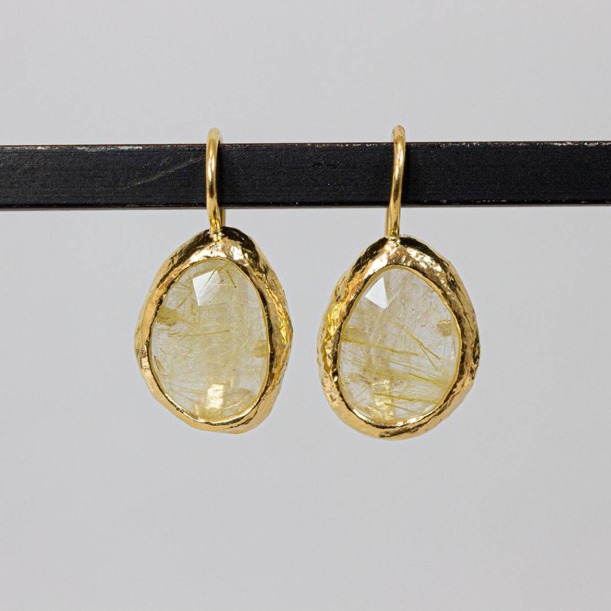 Oorhangers van de najaarscollectie 2022 van Jéh Jewels geheel zilver verguld met Rutielkwarts. Deze oorbellen draagt een rustgevend gevoel met zich mee. De hoeveelheid detail in deze steen is ongelofelijk. Hoe langer je er naar kijkt, hoe meer betoverd je raakt.