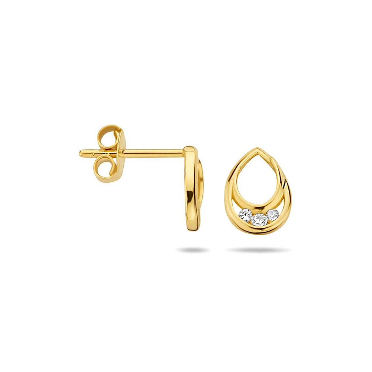 14k Geelgouden oorknoppen uitgevoerd met een schitterende zirkonia rij. De oorknoppen hebben een afmeting van 8.5x6mm.