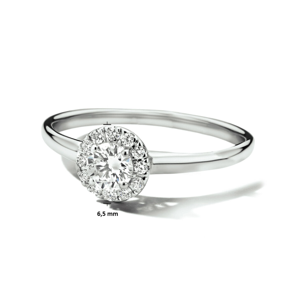 14k Witgouden ring met palladium legering. De ring is uitgevoerd met een Made Diamond en heeft een breedte van 6.5mm. Made Diamonds zijn diamanten die ontstaan in een laboratorium. Onder extreem hoge druk en temperatuur wordt het natuurlijk ontstaansproces nagebootst met als eindresultaat een diamant met dezelfde chemische eigenschappen maar met een andere oorsprong.