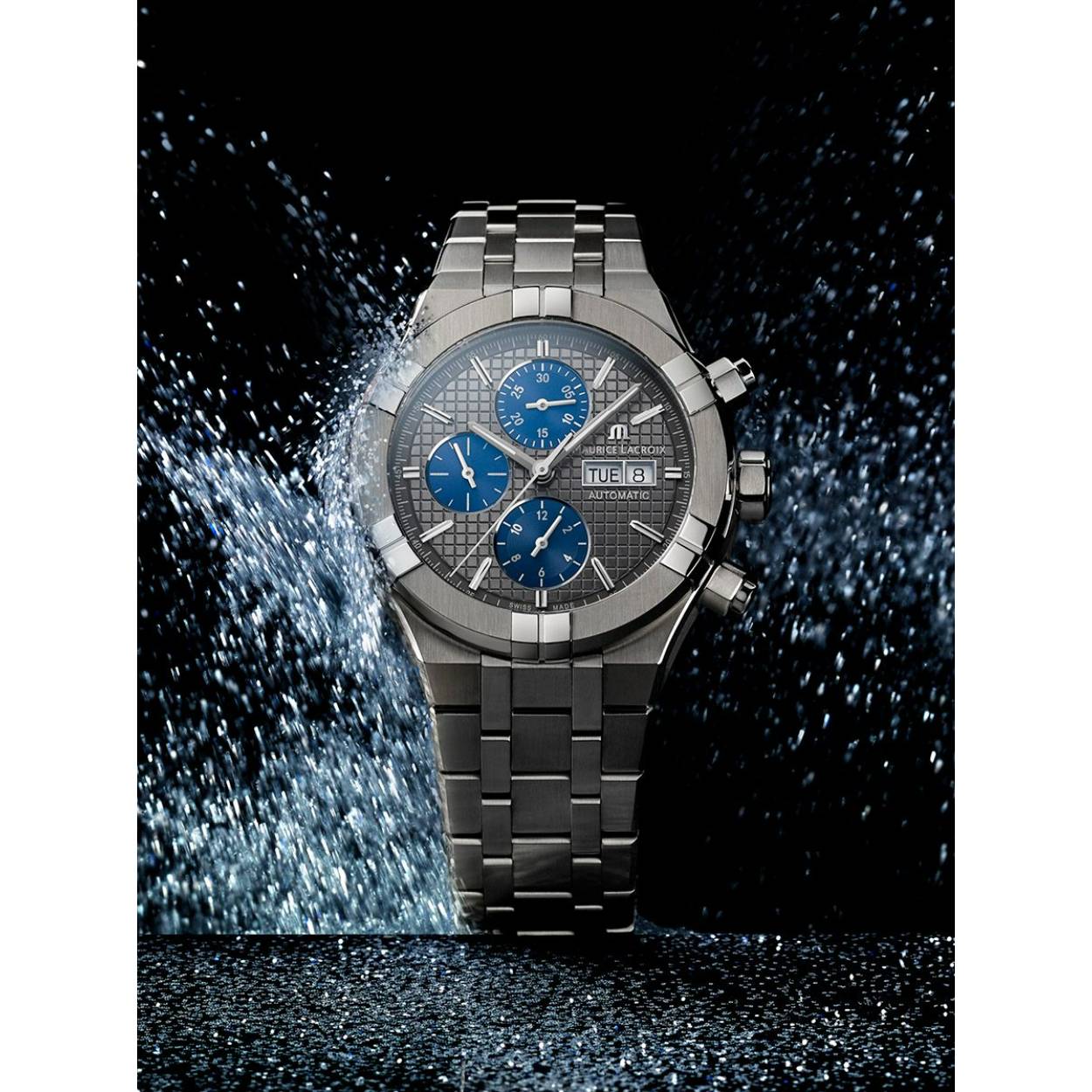 Hard, solide, titanium is als staal, maar efficiënter. Door dit technische materiaal toe te passen op de AIKON Automatic Chronograph overstijgt Maurice Lacroix zijn vlaggenschipcollectie. Het resultaat is een drastisch verminderd gewicht en een ongeëvenaard draagcomfort. Zijn intensere kleur, zijn meer uitgesproken satijnen afwerking, geven AIKON Automatic Chronograph Titanium de uitstraling van een discrete, efficiënte en coole avonturier.