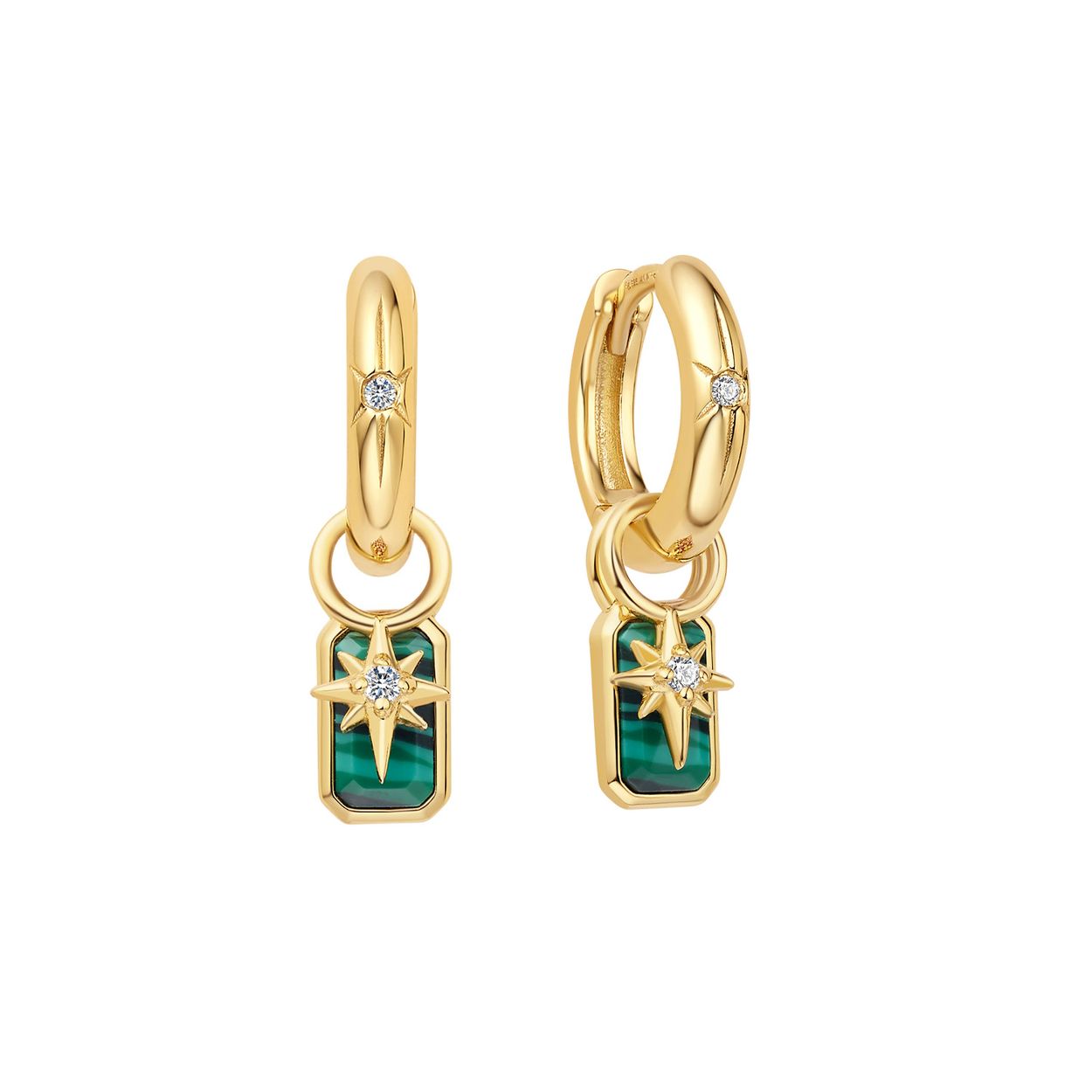 Geef je oorringen een upgrade met deze prachtige groene oorbedel. De bedel bevat een malaquite steen en is gemaakt van 925 sterling zilver met 14 karaat gouden plating. Schuif eenvoudig de bedel over je favoriete oorringen.