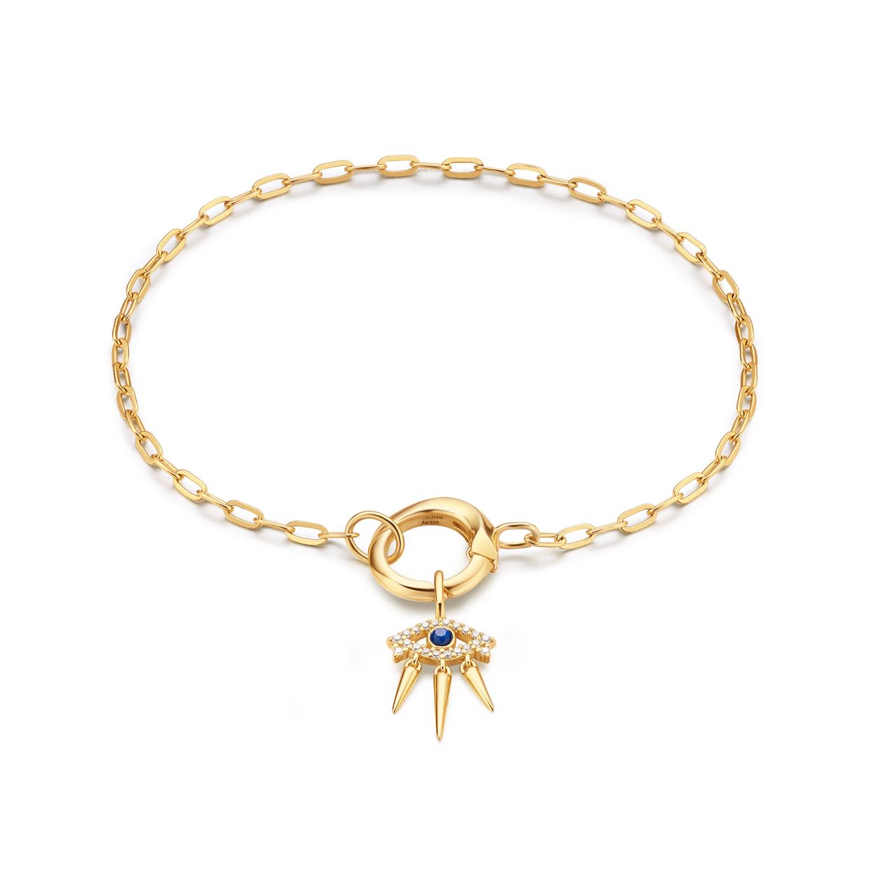 Geef je oorringen een upgrade met deze spirituele boze oog oorbedel. De bedel is gemaakt van 925 sterling zilver met 14 karaat gouden plating en is bezet met glinsterende zirkonia's en een blauwe lapis edelsteen. Schuif eenvoudig de bedel over je favoriete oorringen.