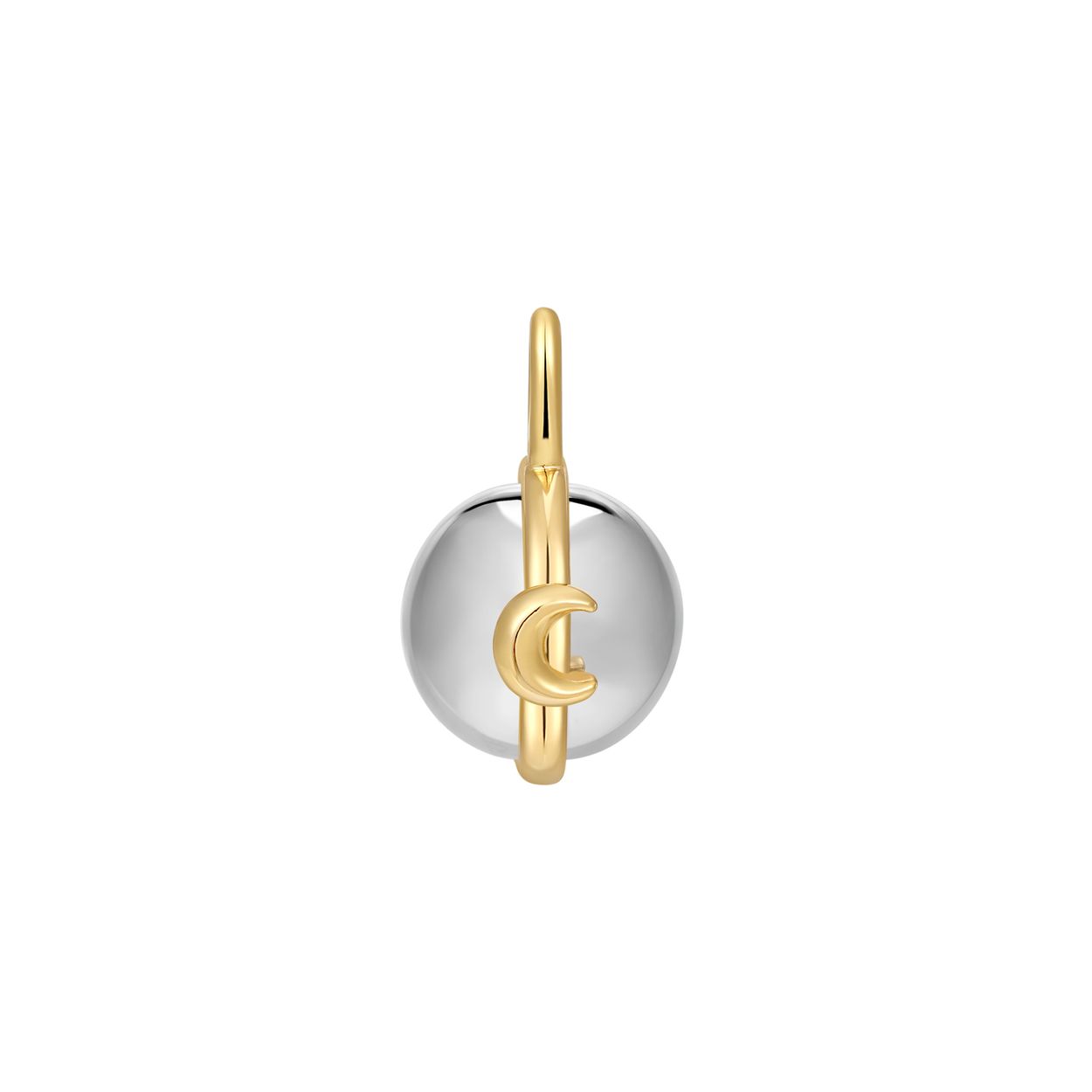 Geef je ketting een upgrade met deze zilver en goud kleurige bedel. Een zilveren bol is gecombineerd met een strook glanzend goud en afgewerkt met een fonkelende, met kubieke zirkonia ingelegde ster aan de ene kant en een chique kosmische maan aan de andere kant. Bevestig je bedel eenvoudig aan een kettng, armband of connector.