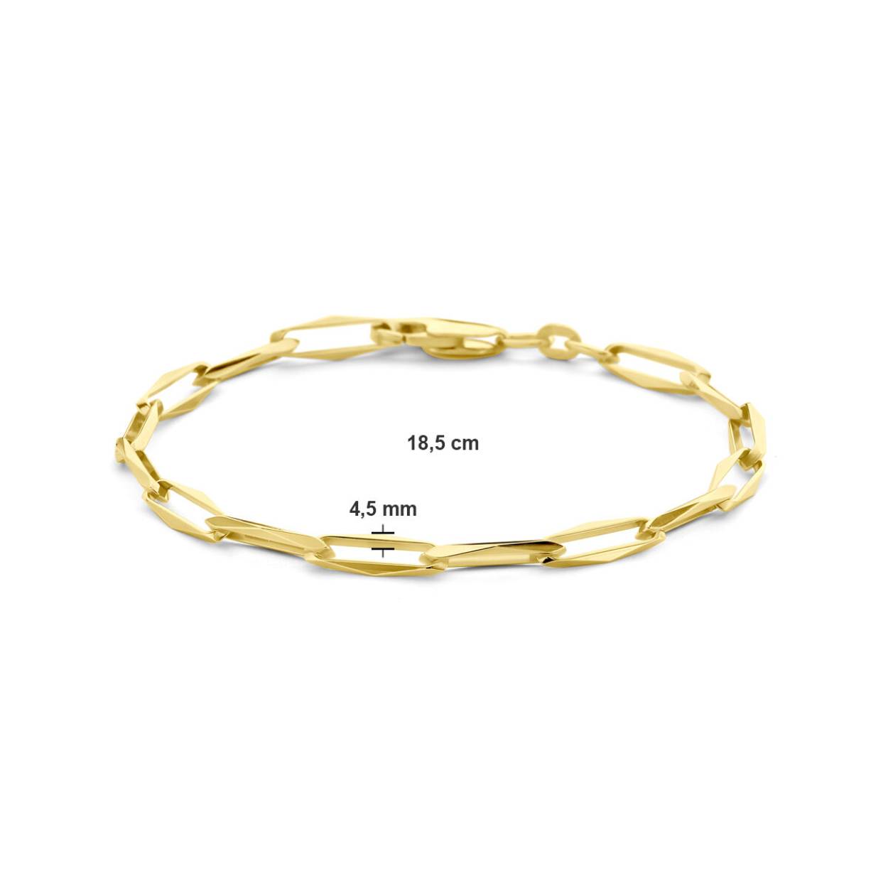 14K Geelgouden c.f.e. armband uitgevoerd met een karabijn sluiting. De schakelbreedte is 4.5mm.
