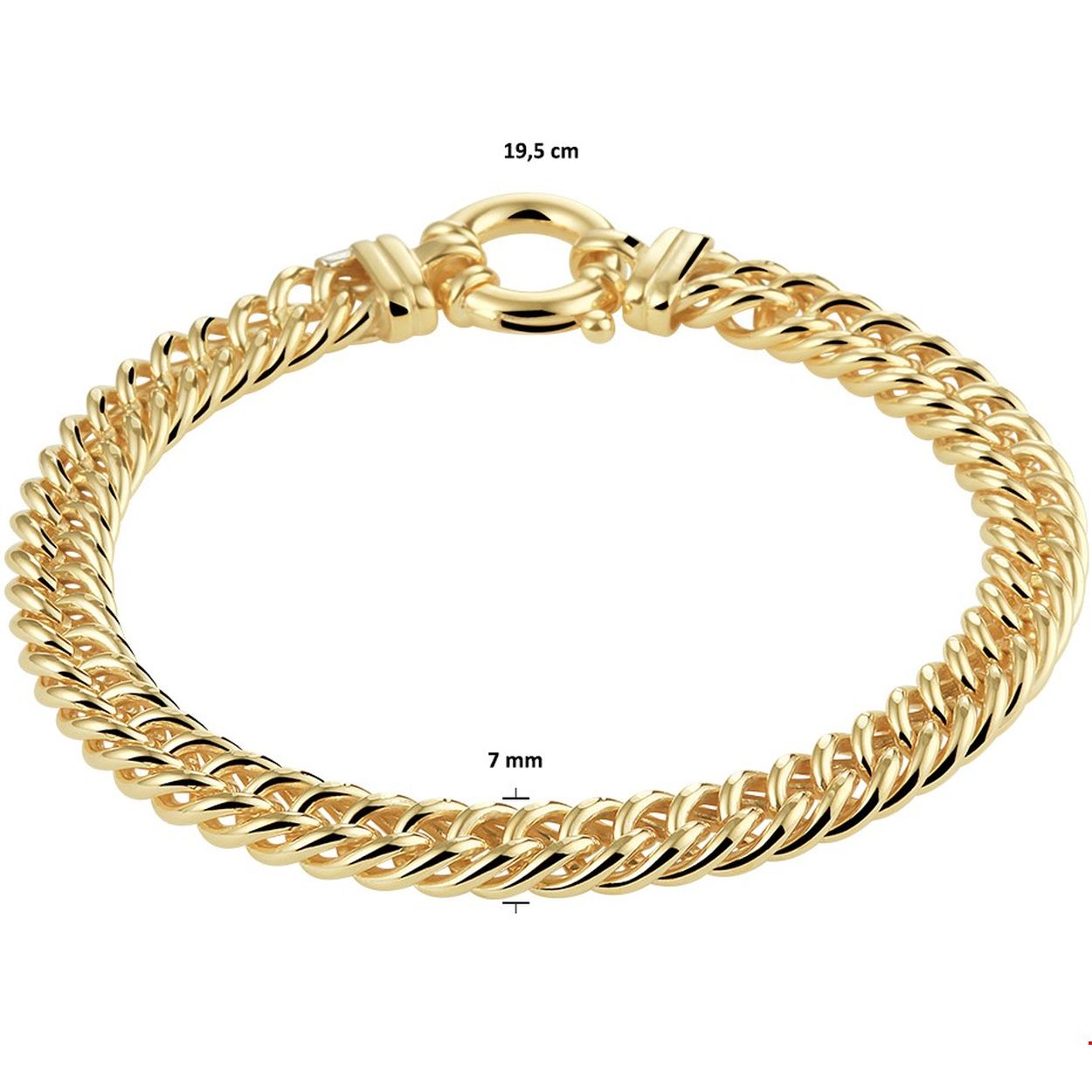 Beschrijving: Sieraden van 14 karaat goud met daarin een kern van 925 zilver. Geelgouden armband met gourmet schakel met een schakelbreedte van 7mm en een totale lengte van 19.5cm.