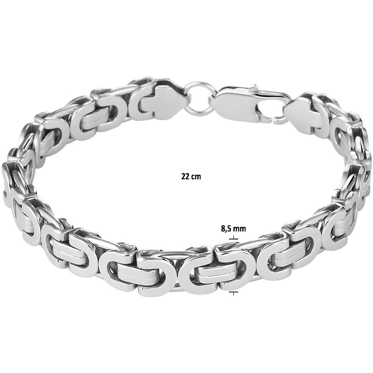 Stalen armband met een koningsschakel. De armband heeft een draaglengte van 22cm en een stevige karabijn sluiting.