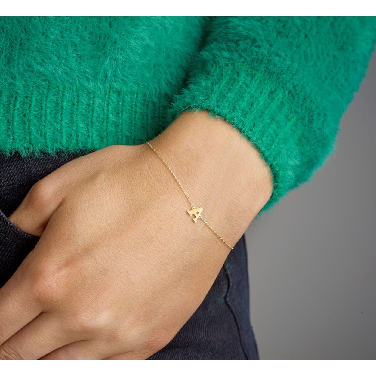 14k Geelgouden anker armband uitgevoerd met de letter A. De armband heeft draaglengtes van 16.5, 17.5 en 18.5cm. De letter heeft een afmeting van 6x6.5mm.
