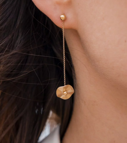 Product: Oorbellen 12mm bloesems in 585/- geelgoud, gepolijst/ijs mat, met een gat in het midden voor de ketting, modelnummer 20-0013-12. Kenmerken: Stud oorbellen, goudkleurig, 14-karaats goud. Het beste te dragen als elegante toevoeging aan dagelijkse en feestelijke outfits. Voeg subtiele luxe en verfijning toe aan elke look.