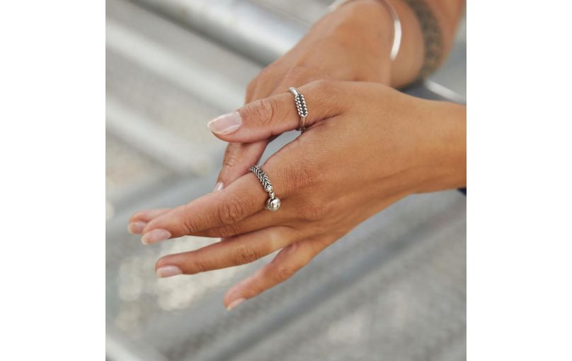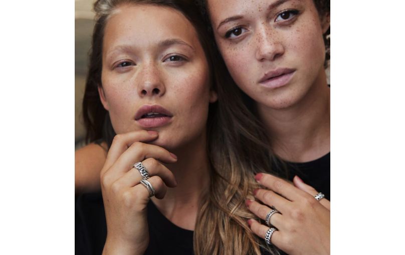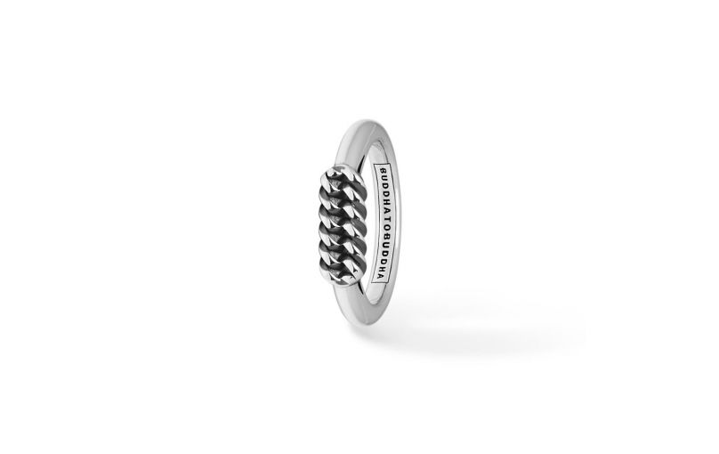 Buddha To Buddha 1e gehalte zilveren ring met bovenop een recht gourmet stuk . Model: 016-Refined Chain in maat 15