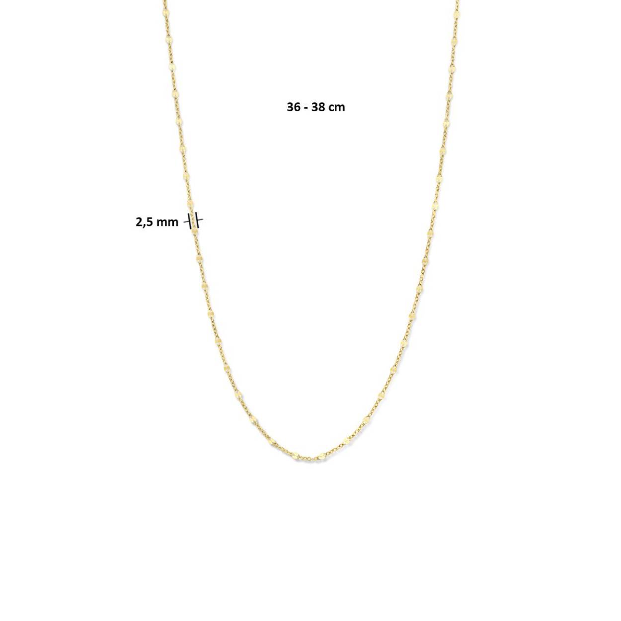 14k Geelgouden collier met een schakelbreedte van 2.4mm en een karabijn sluiting. Het collier heeft draaglengtes van 36 en 38cm.
