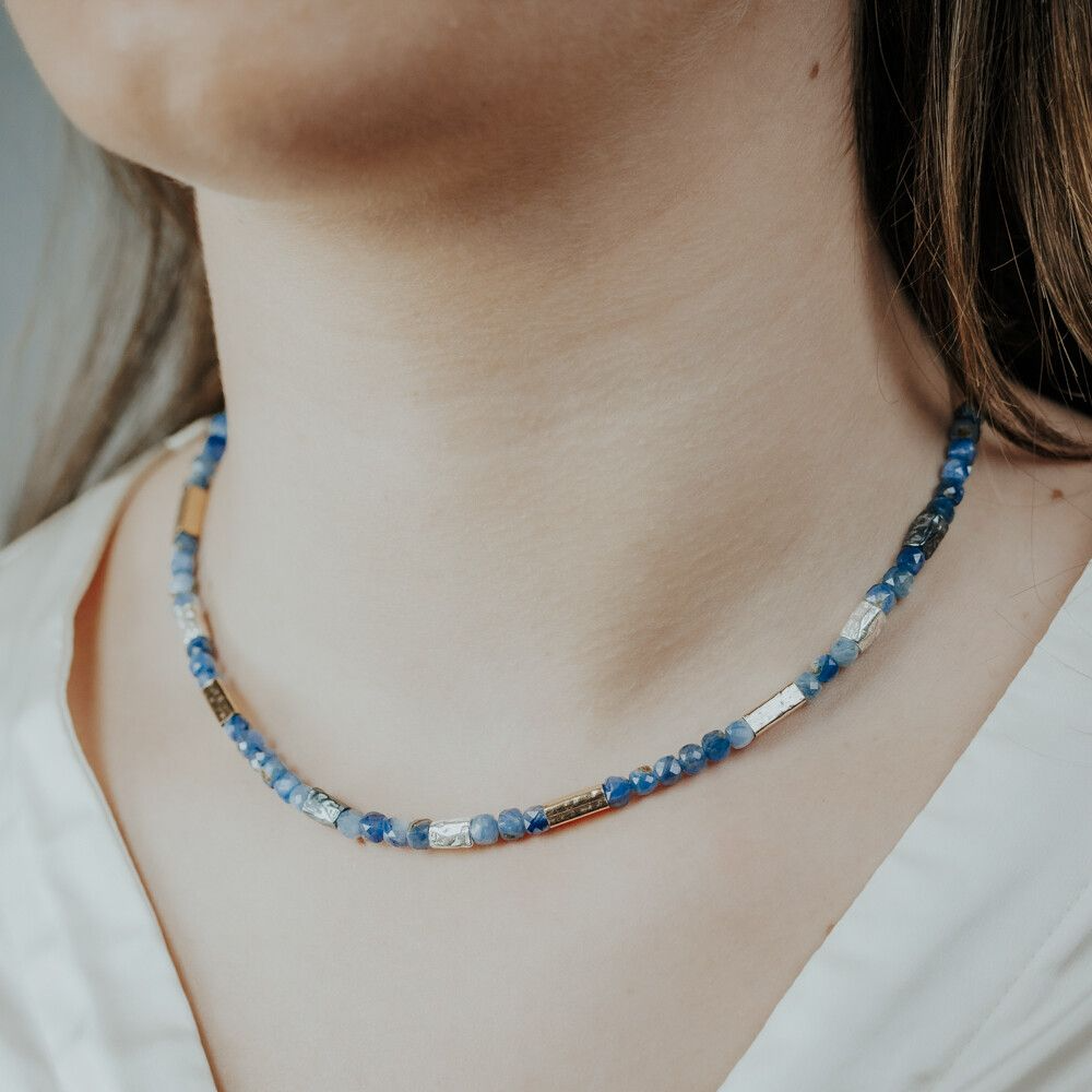 De Collier edelstenen Kyaniet 43 cm Zilver, oxy, Goldfilled, modelnummer 21144, is een elegante hanger met kyaniet stenen. De combinatie van zilver en goldfilled elementen zorgt voor een luxe uitstraling. Draag het collier als een opvallend accessoire bij een avondjurk of casual outfit. Perfect voor speciale gelegenheden of als dagelijkse blikvanger.