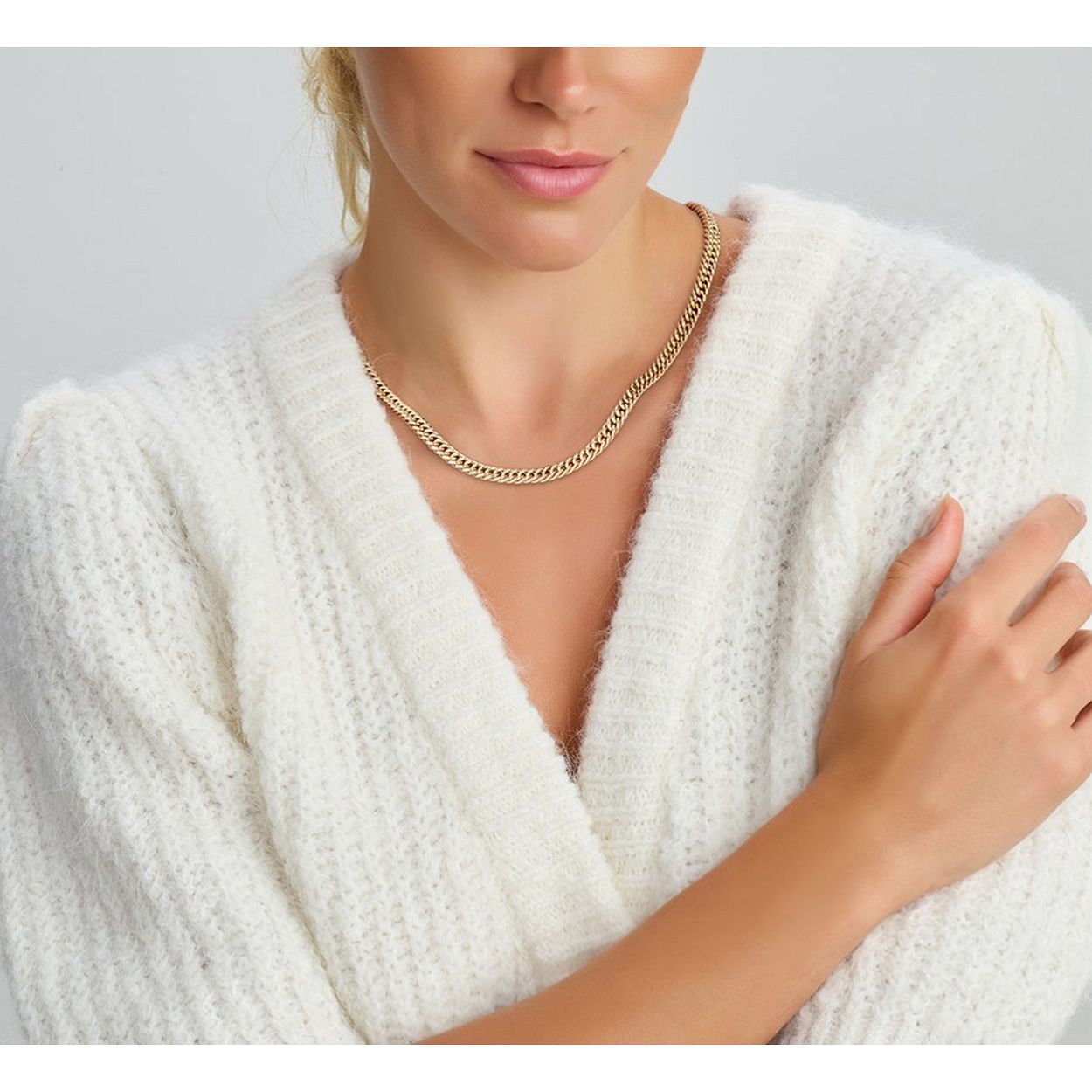 14k Geelgouden gourmet collier met een schakelbreedte van 5.8mm. Het collier heeft een draaglengte van 45cm en is uitgevoerd met een groot veerslot.