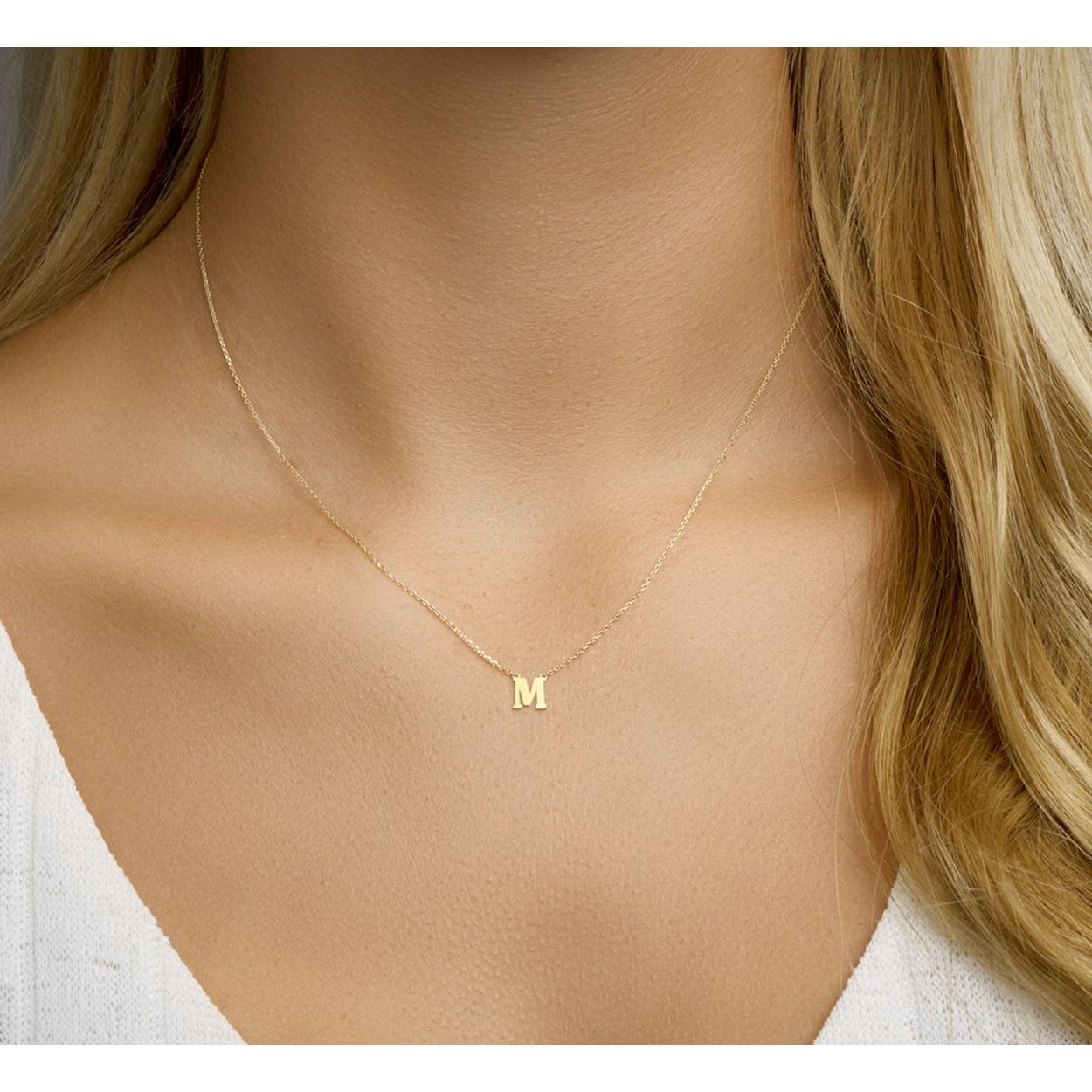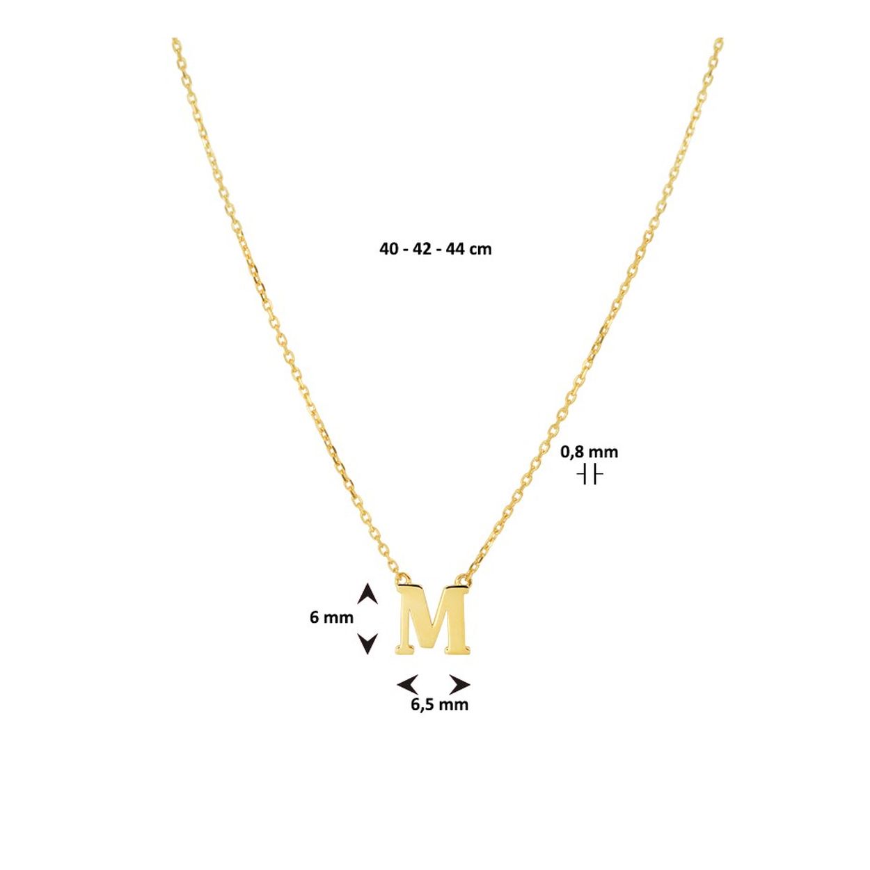 14k Geelgouden anker collier uitgevoerd met de letter M. Het collier heeft draaglengtes van 40, 42 en 44cm. De letter heeft een afmeting van 6x6.5mm.