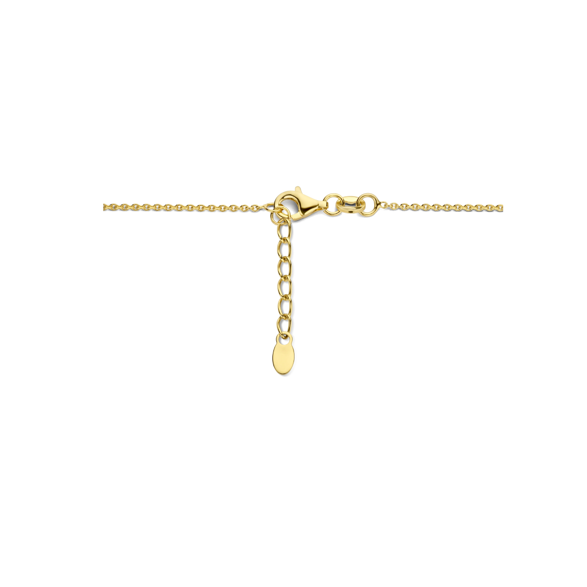 Geelgoud op 925 zilveren collier uitgevoerd met zoetwaterparels van 6.5mm en een karabijn sluiting. Het collier heeft een draaglengte van 40cm en een extensie van 4cm. Geen garantie op plating.
