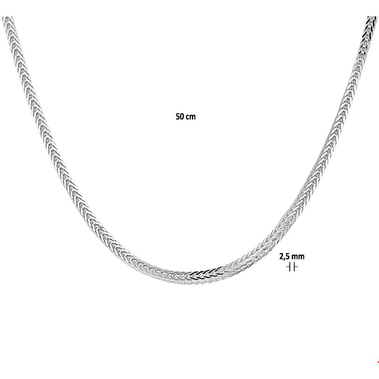Zilveren collier met een vossestaart schakel. Het collier heeft een schakelbreedte van 2.5mm en een draaglengte van 50cm. Uitgevoerd met een karabijn sluiting.