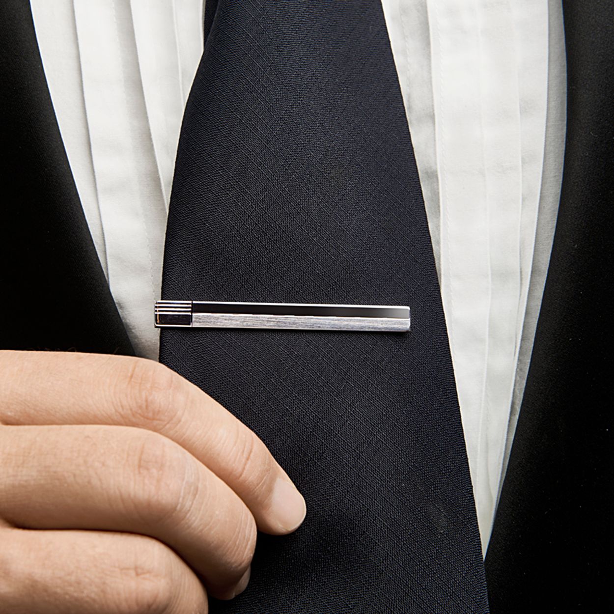 Zilveren dasschuif met een mat gediamanteerde afwerking.