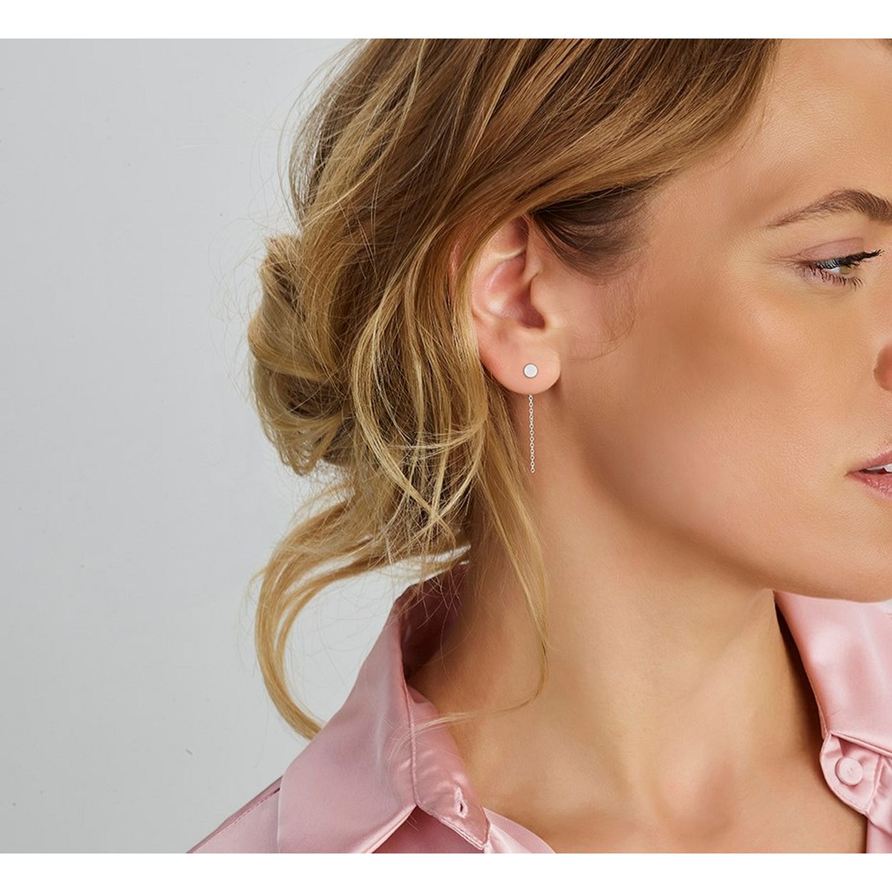 Gerhodineerd 925 zilveren doortrekoorbellen uitgevoerd met een rondje. De oorbellen hebben een totale lengte van 5cm en een breedte van 4mm.