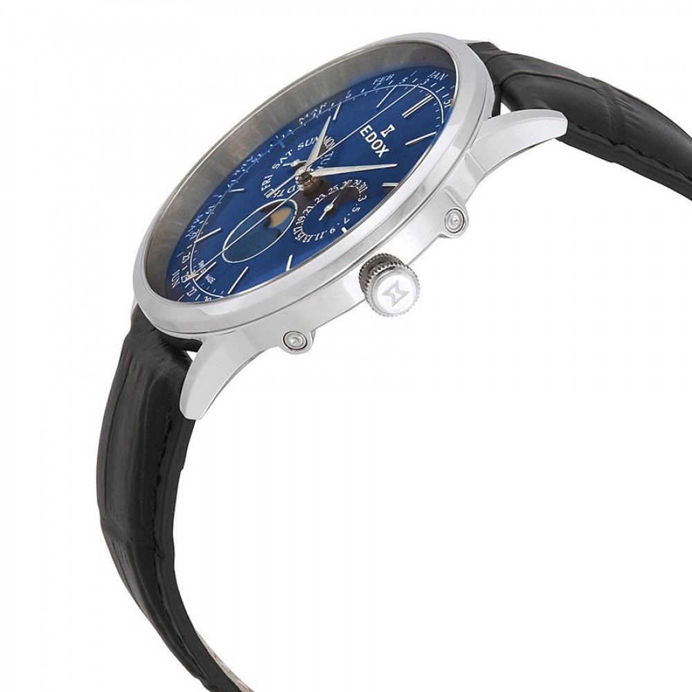 Dit Edox horloge heeft een roestvrijstalen kast met een diameter van 42mm en is voorzien van een leren band. In de kast bevindt zich een kwaliteitsuurwerk en is afgewerkt met saffierglas.