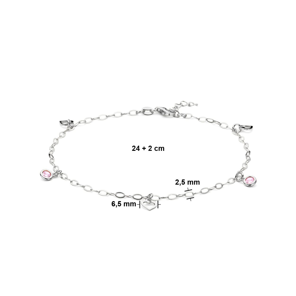 13.38944 Enkelbandje hart en roze zirkonia 24 + 2 cm