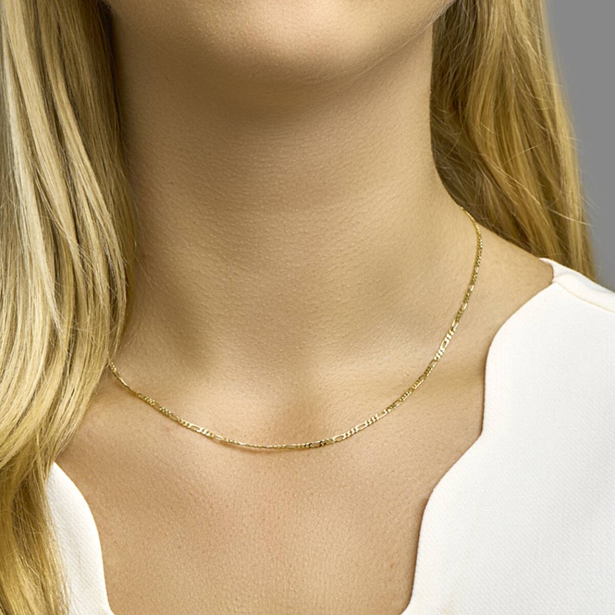 Geelgouden lengte artikel met figaro schakel. De schakelbreedte is 1.8mm.