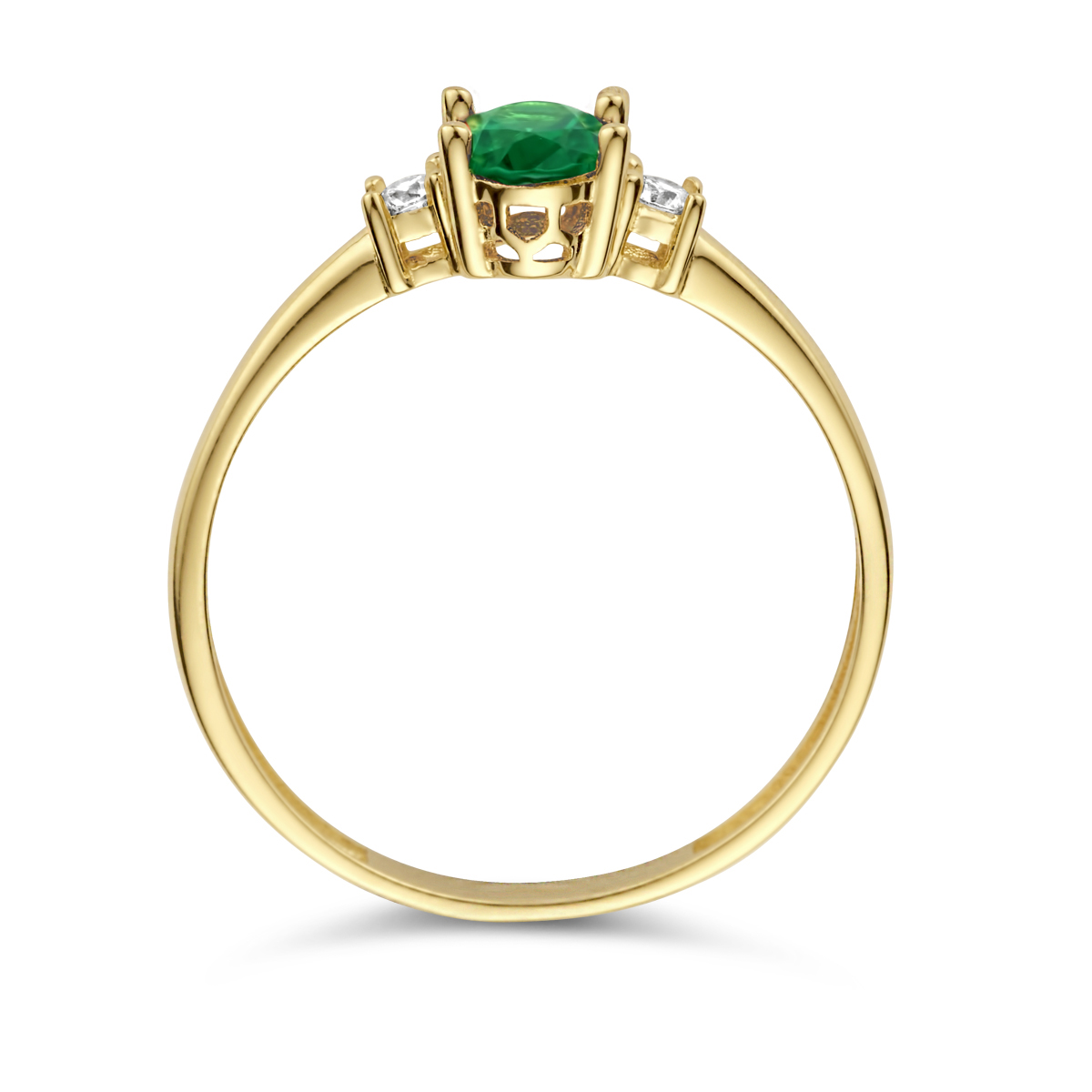 14k Geelgouden ring uitgevoerd met groene zirkonia. De ring heeft een breedte van 6mm.