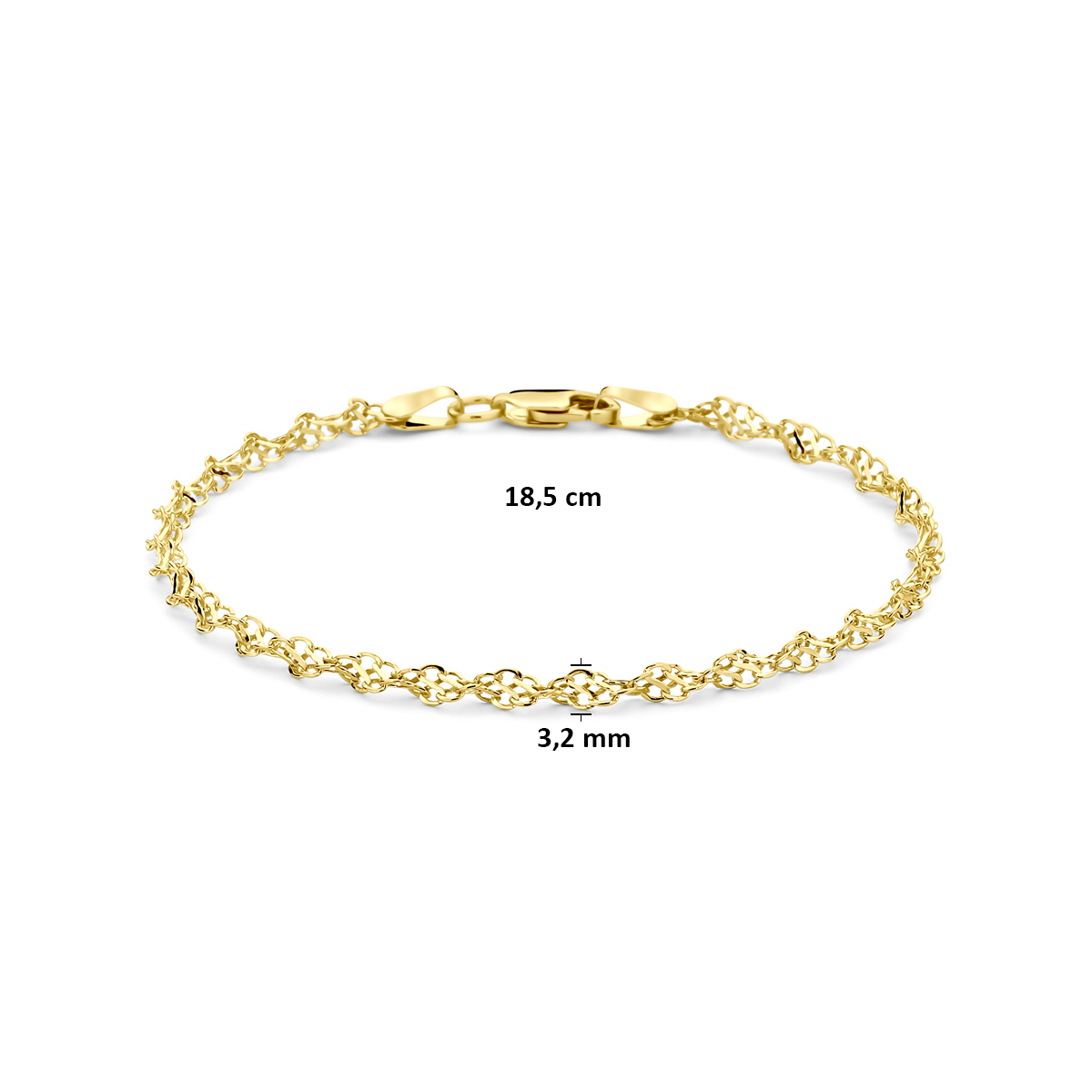 14k Geelgouden armband met een kern van 925 zilver. De armband heeft een breedte van 3,2mm en een lengte van 18,5 cm. Uitgevoerd met karabijnsluiting.