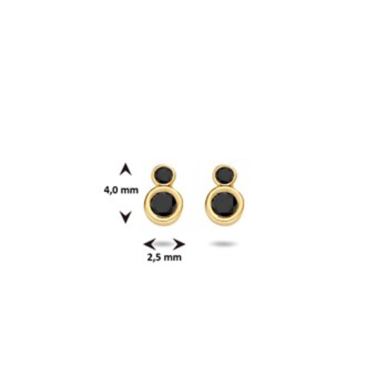14k Geelgouden oorknoppen uitgevoerd met schitterend zwart zirkonia. De oorknoppen hebben een afmeting van 4x2.5mm.