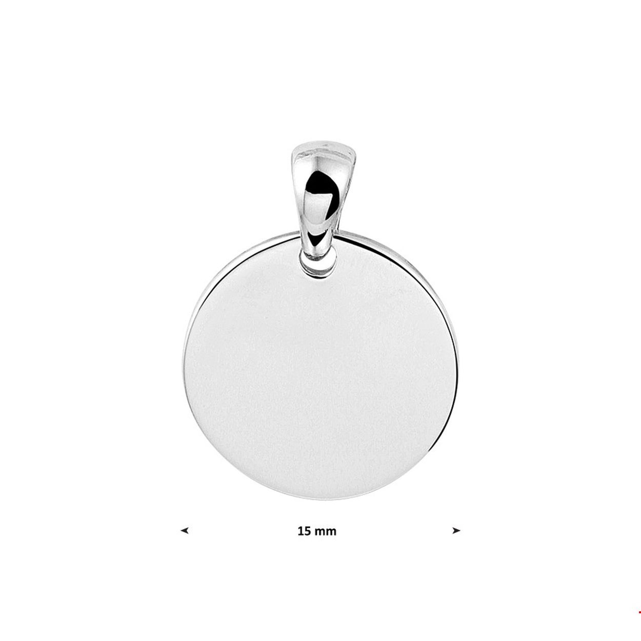 Beschrijving: Klassiek gerhodineerd zilveren ronde graveerhanger met een diameter van 15mm uitgevoerd met een stevig hangoog. Tip: Combineer deze graveerhanger met een collier uit onze collectie! Info: Gerhodineerd zilver is door de rhodiumlaag beter bestand tegen verkleuren en krassen.