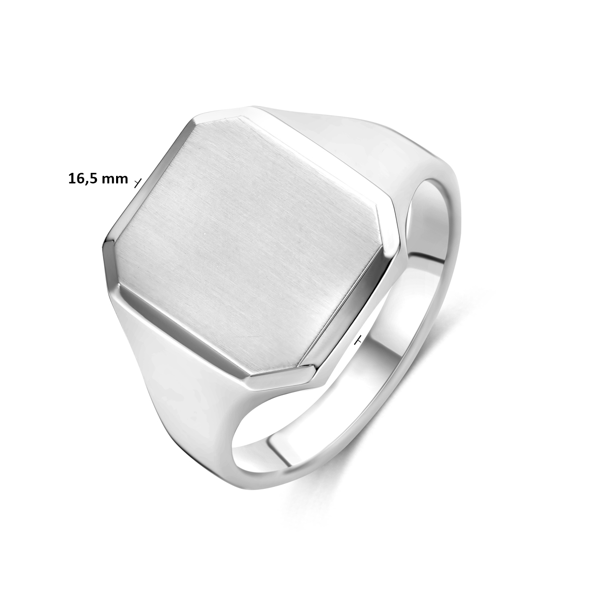 Gerhodineerd 925 zilveren graveerring met een afmeting van 14x12mm.