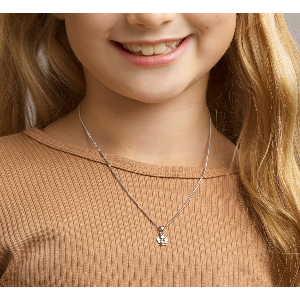 Gerhodineerd 925 zilveren hanger in de vorm van een engel. De hanger heeft een afmeting van 11.5x8mm en een totale hoogte van 1.5cm.
