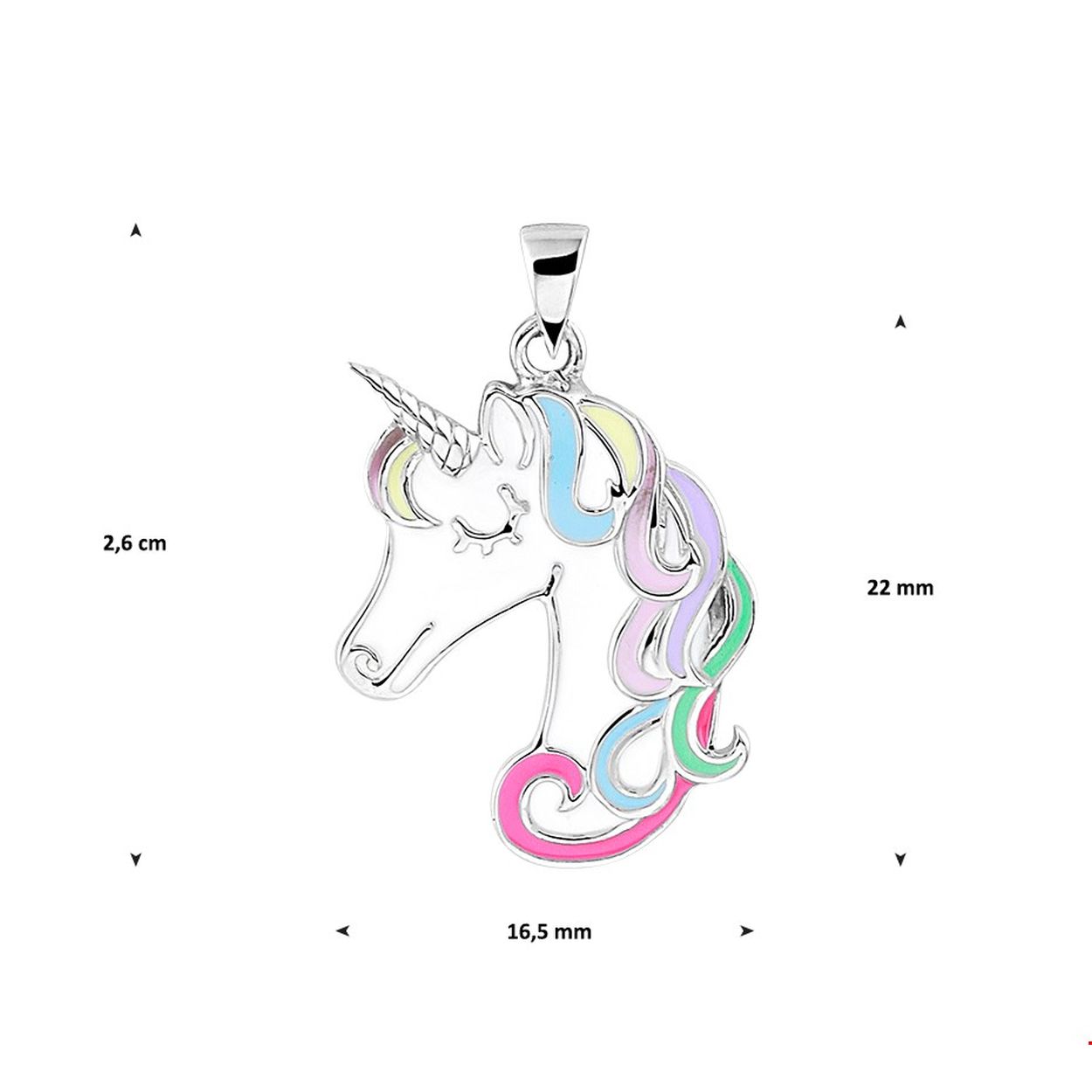 Beschrijving: Gerhodineerd zilveren eenhoorn hanger met een afmeting van 26x16.5mm. Deze hanger is perfect te combineren met een bijpassend collier uit onze collectie. Info: Gerhodineerd zilver is door de rhodiumlaag beter bestand tegen verkleuren en krassen.