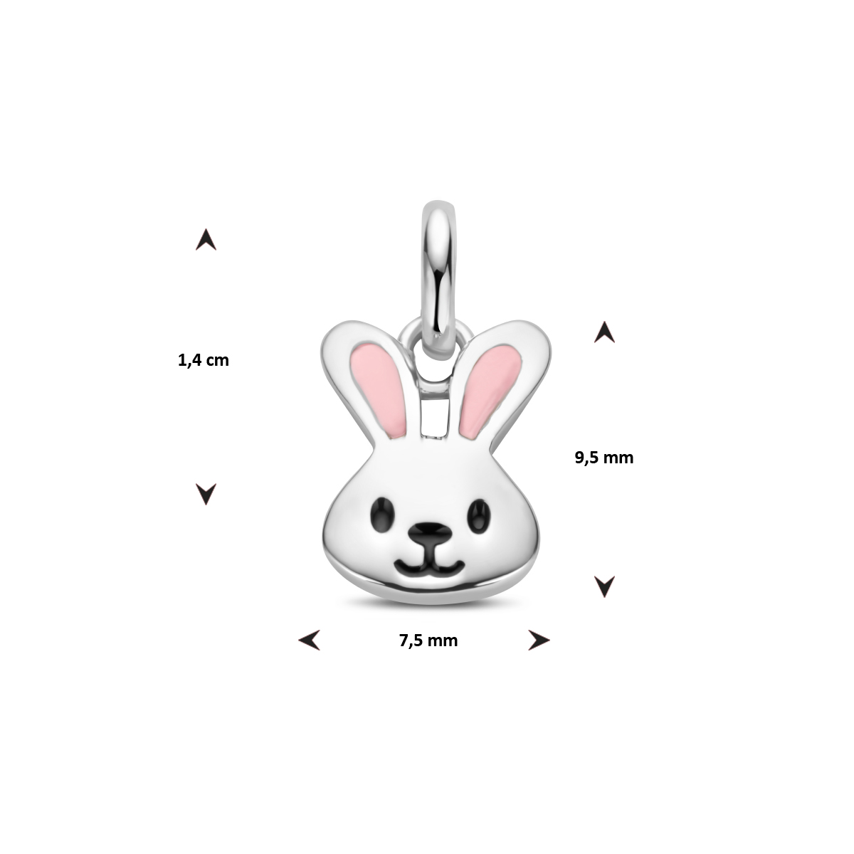 Zilveren hanger in de vorm van een konijn.