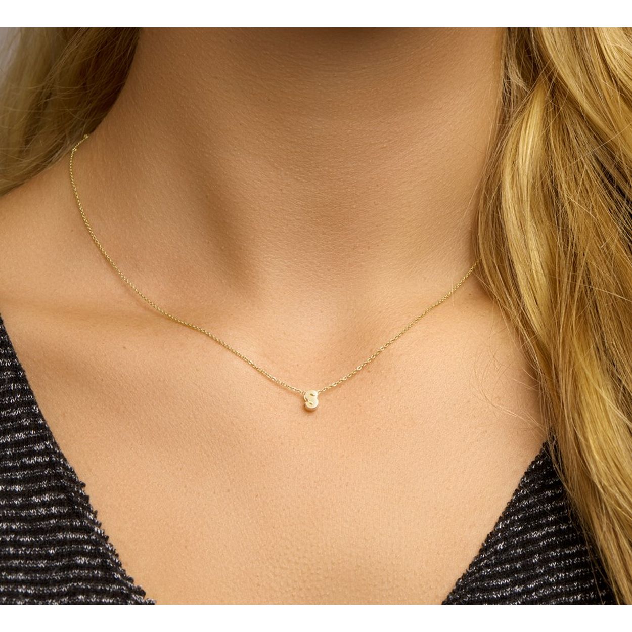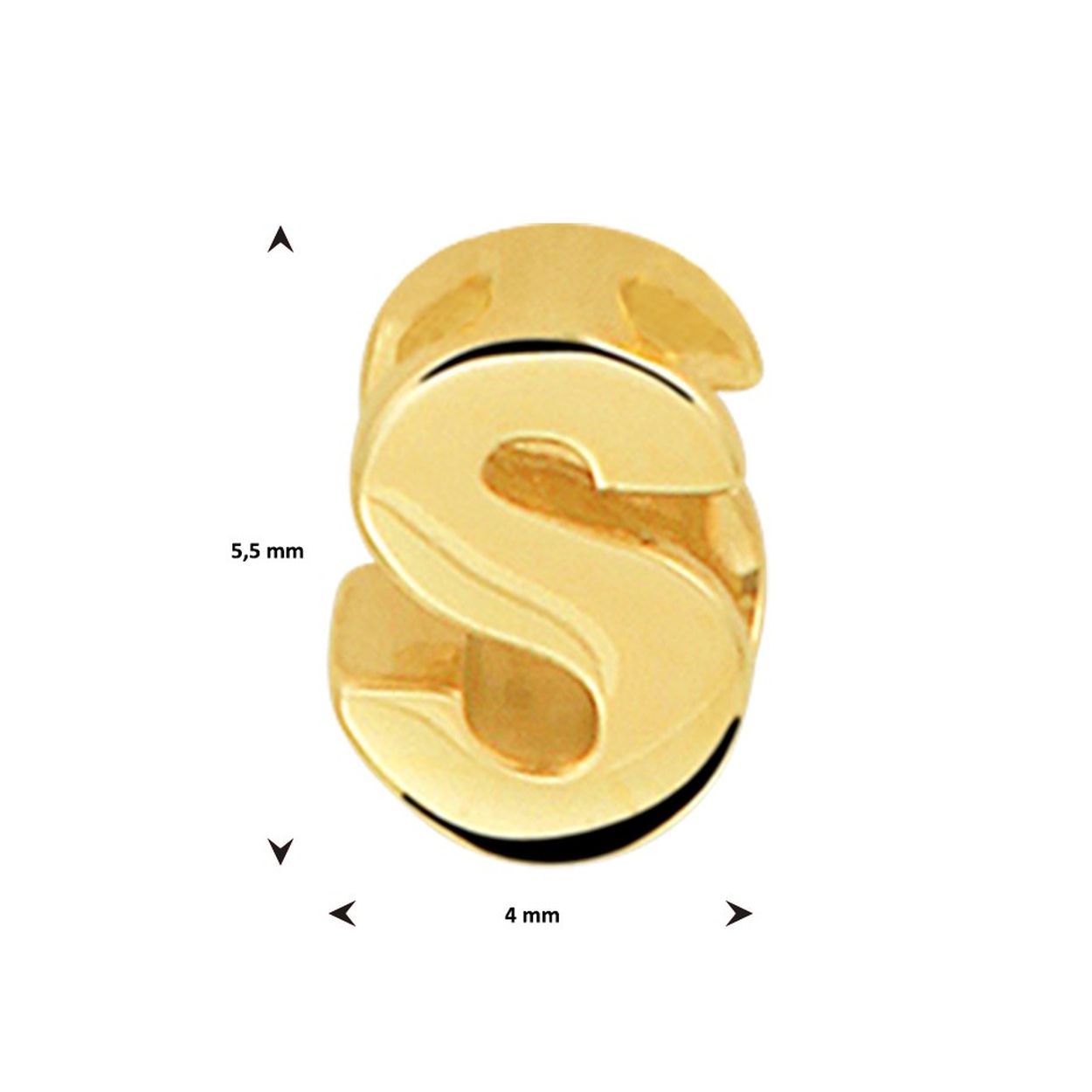 14k Geelgouden hanger uitgevoerd in de letter S. De hanger heeft een afmeting van 5.5x4.0mm.
