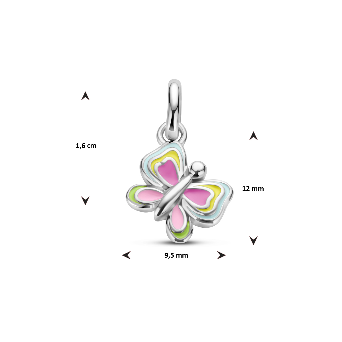 Zilveren hanger in de vorm van een vlinder met kleurrijke emaillering.