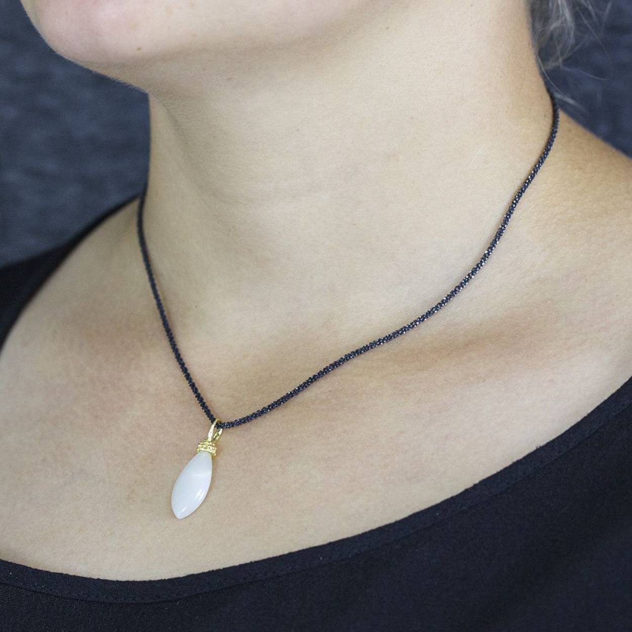 Hanger uit de Mix & Match-collectie van Jéh Jewels, gemaakt van verguld 925 sterling zilver met maansteen.  Maansteen is de steen van de hoop. De steen staat voor intuïtie, gevoel, liefde en vruchtbaarheid.