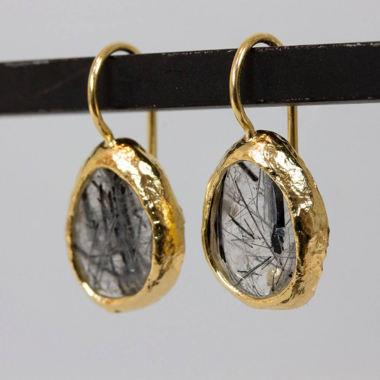 Zilver vergulde oorhangers met een rutielkwarts. Deze oorbellen draagt een rustgevend gevoel met zich mee. De hoeveelheid detail in deze steen is ongelofelijk. Hoe langer je er naar kijkt, hoe meer betoverd je raakt.