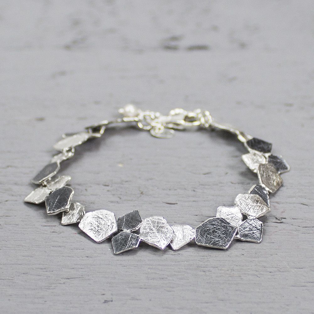Deze armband is gemaakt van 925 sterling zilver. Enkele schakels zijn geoxideerd wat zorgt voor een mooi zwart-wit patroon. De schakels zelf hebben leuke en afwisselende organische vormen.