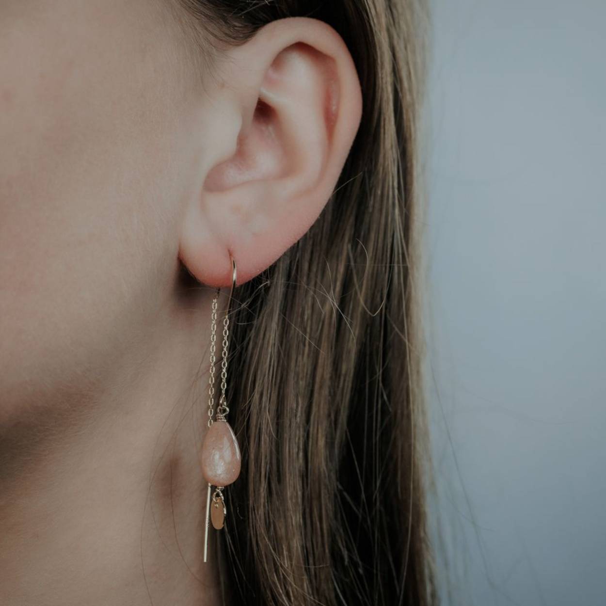 Doortrek oorbel van Jéh Jewels is gemaakt van zilver verguld in combinatie met Gold Sunstone, oftewel Zonnesteen. Combineer met een mooi collier, ring of armband.