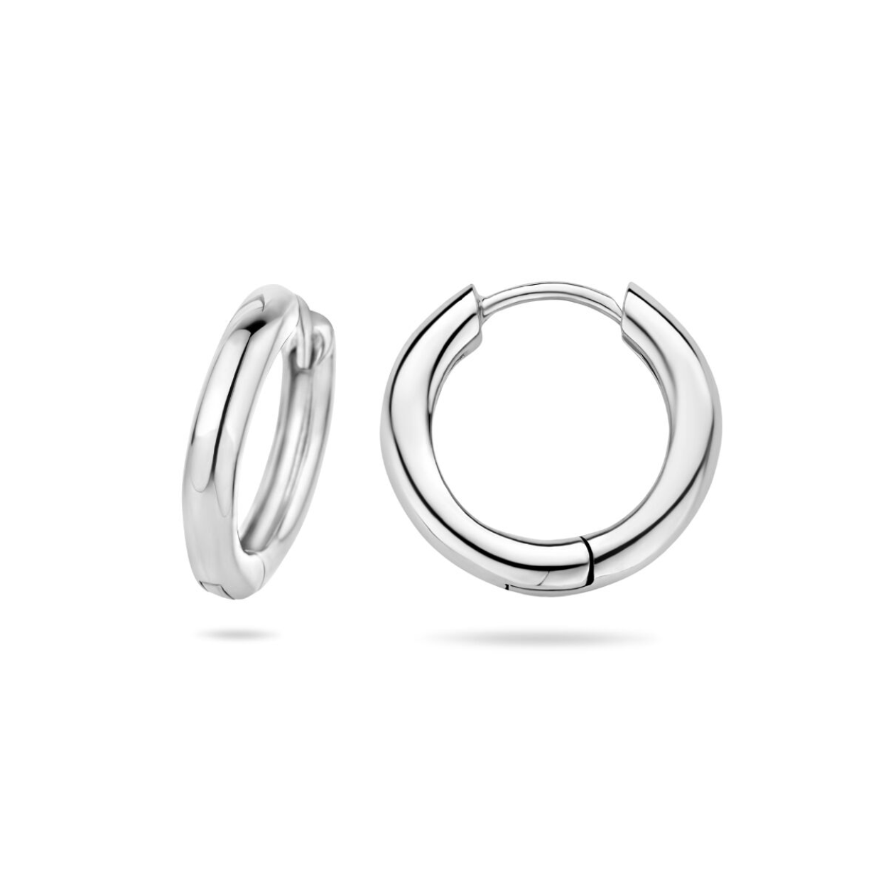 Gerhodineerd zilveren oorringen voor oorringhangers. De oorringen hebben een half-bolle buis en een poli afwerking.