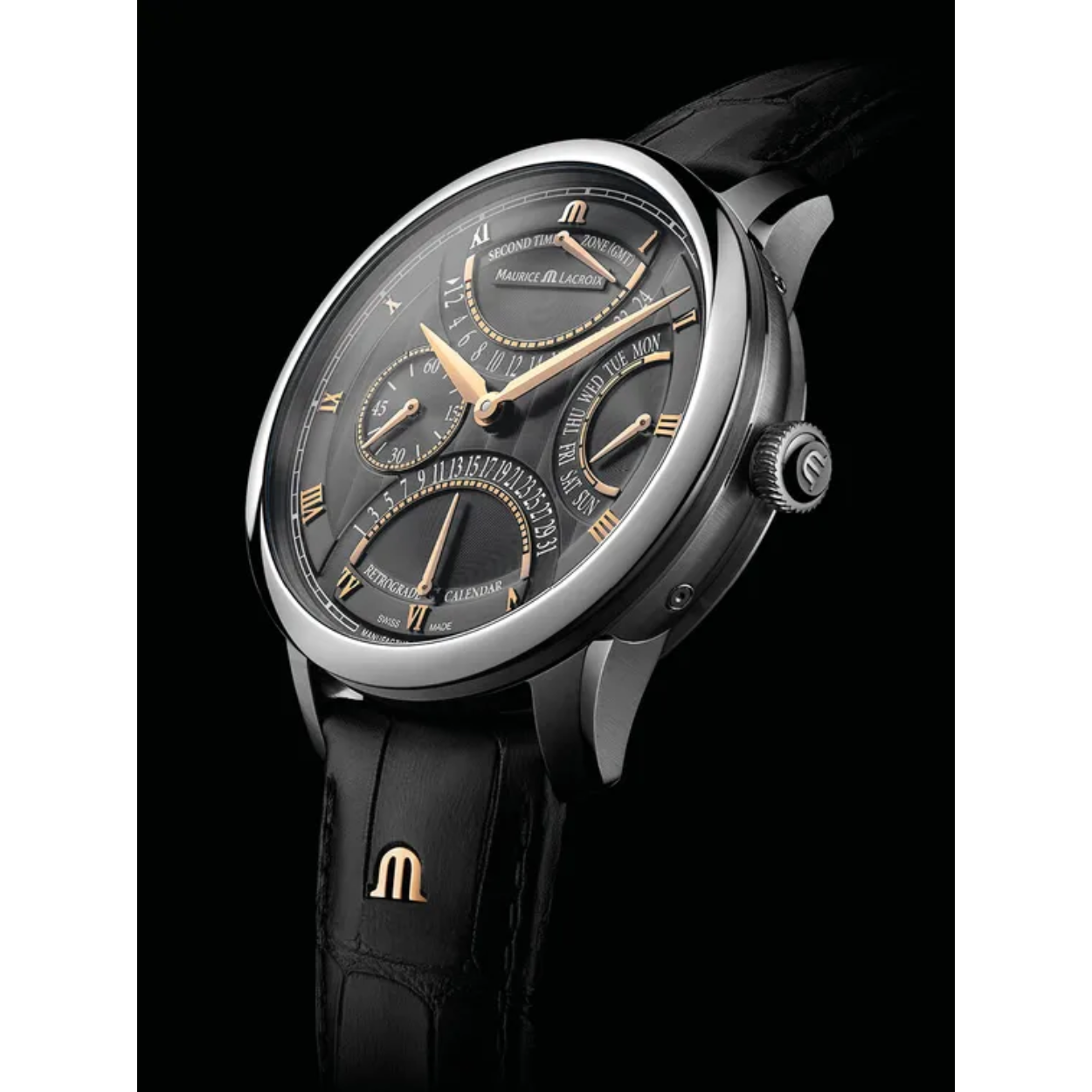 Dit dameshorloge is van het merk Maurice Lacroix. Het is een analoog horloge gemaakt van edelstaal. De diameter van de kast is43 mm.