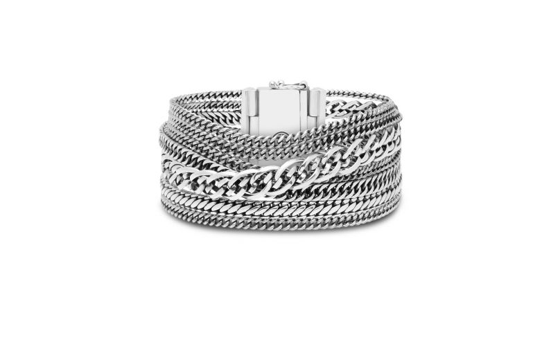 Met deze Multi Chain armband kun je niet fout gaan met de styling van jouw outfit. De sterling zilveren armband biedt een unieke benadering van al onze iconische schakels bij elkaar. Geïnspireerd door connectiviteit zijn de schakels met elkaar verweven voor een gedurfd statement.
