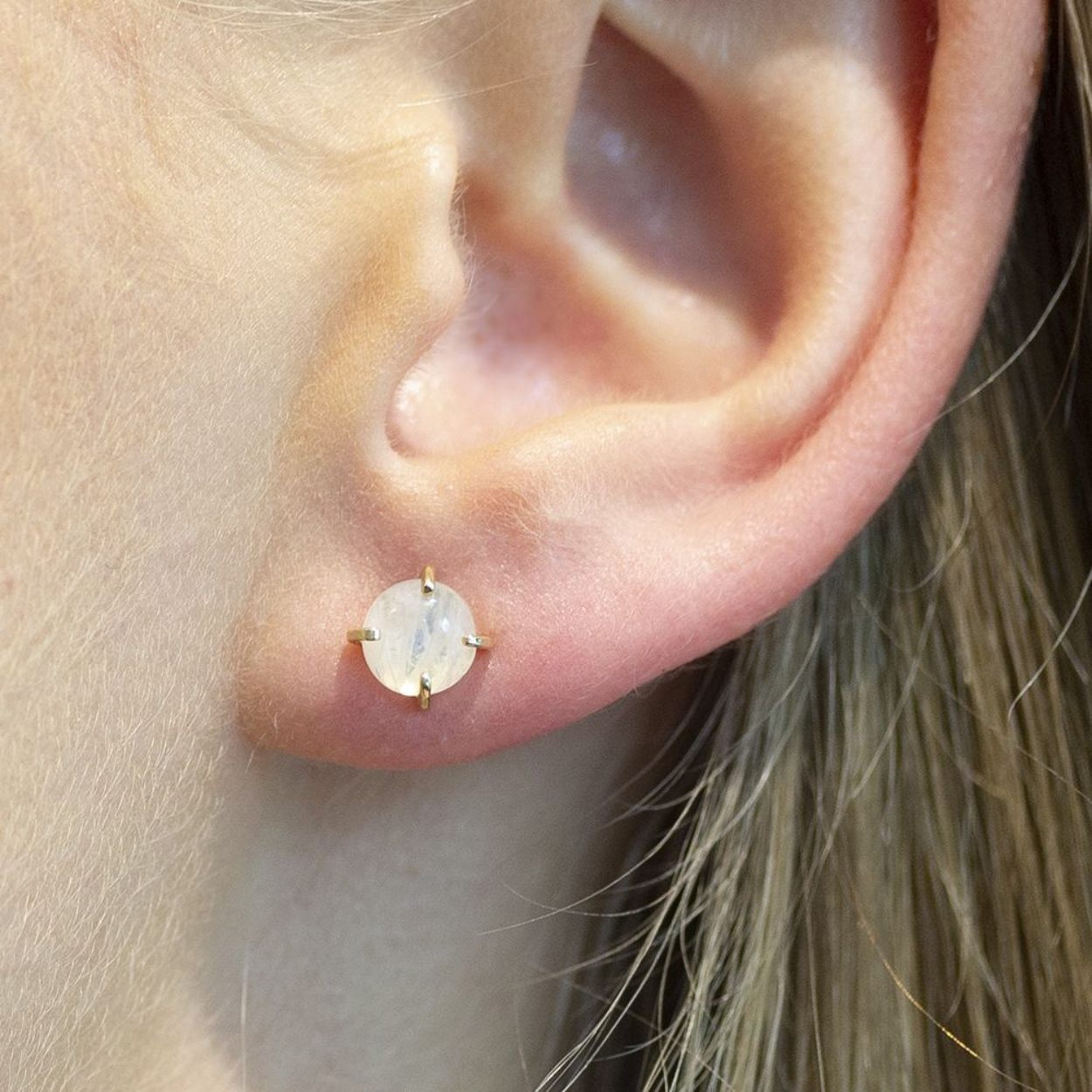Zilver vergulde oorknoppen, van Jéh Jewels, met een maansteen.