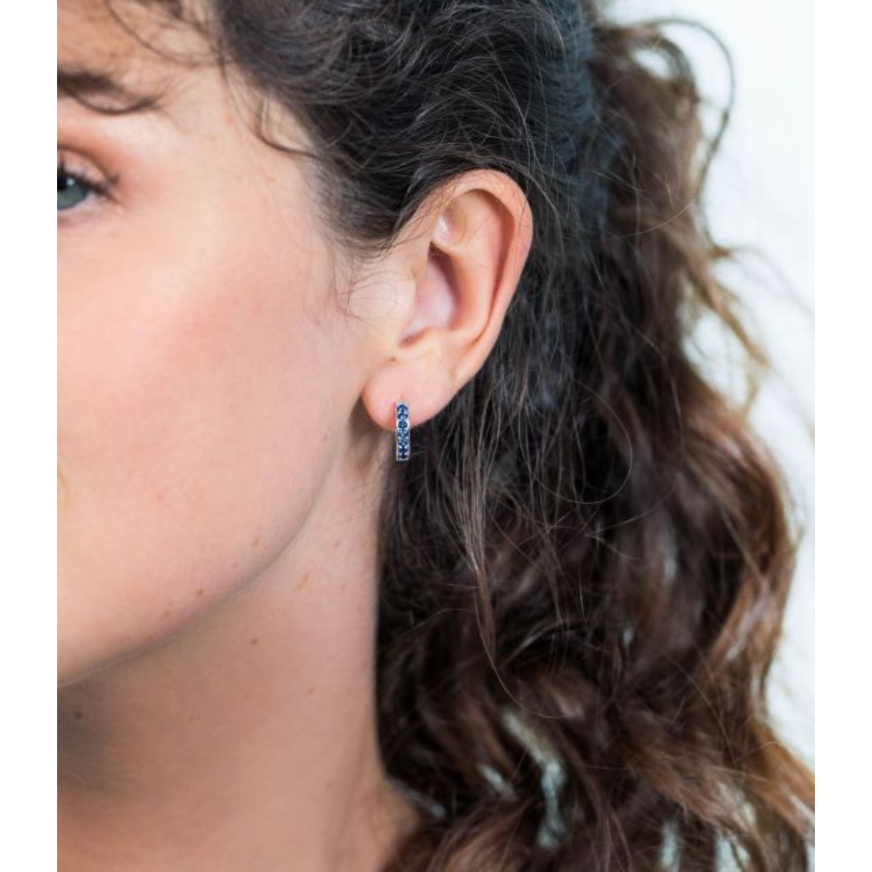 ZINZI zilveren oorringen bezet met donkerblauwe zirconia's en voorzien van luxe scharniersluiting. De oorringen zijn 15 x 3mm groot. Ideaal te combineren met Zinzi oorbedels.