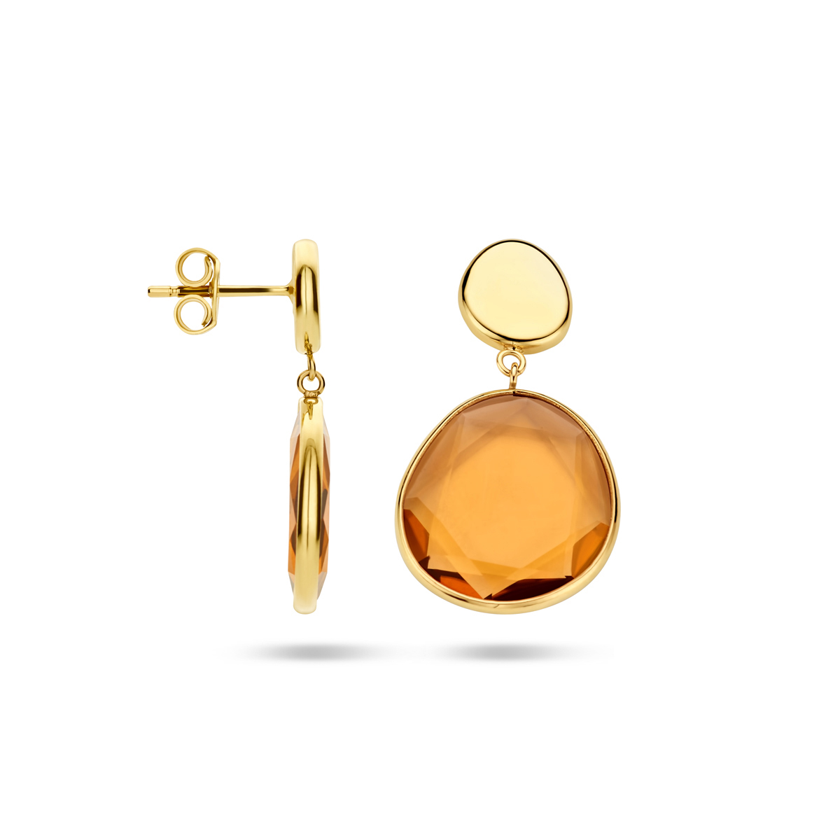 14k Geelgouden oorhangers uitgevoerd met citrien.