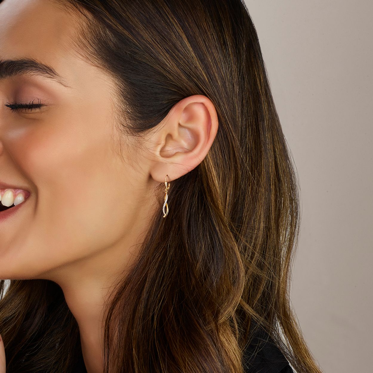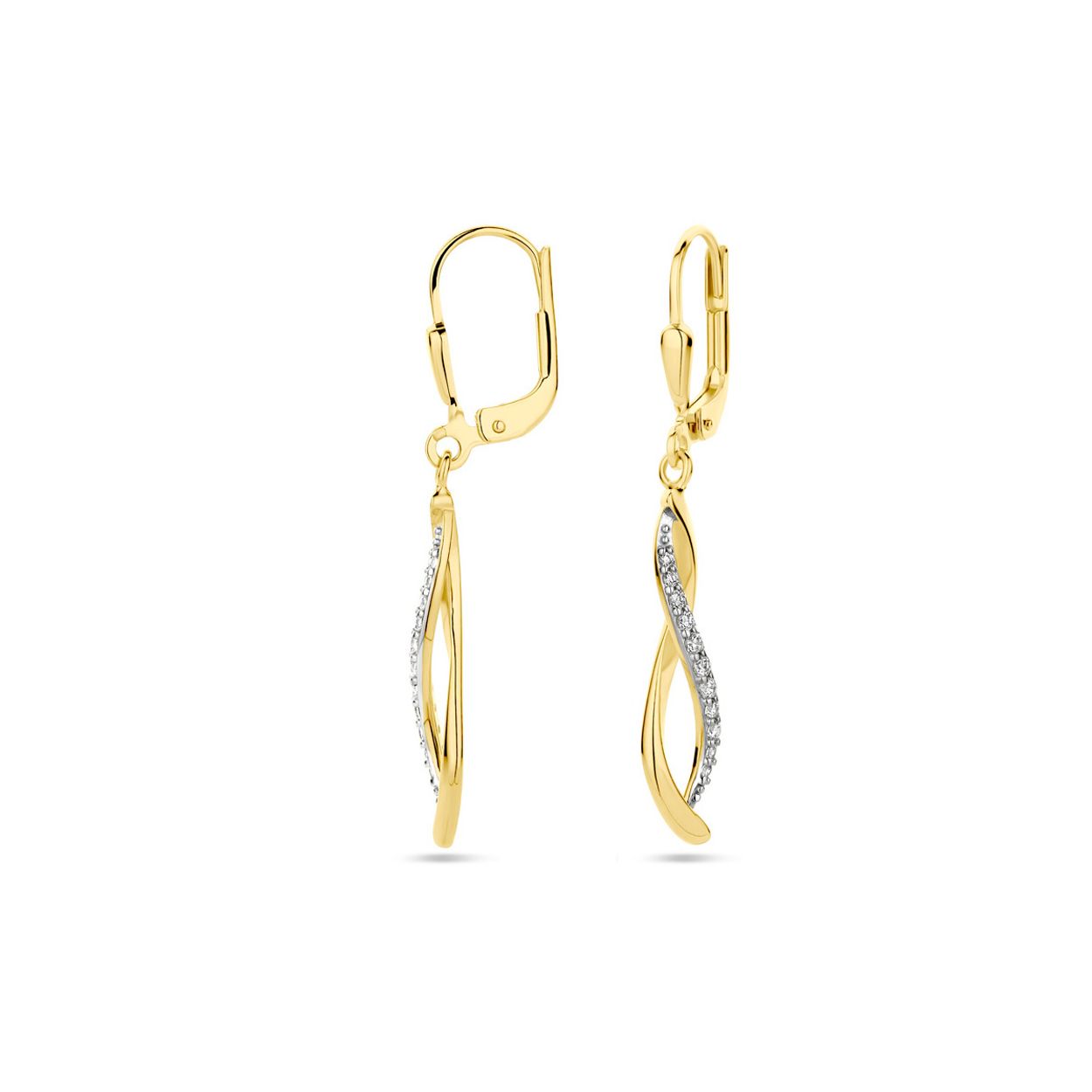 14k Geelgouden oorhangers uitgevoerd met zirkonia. De oorhangers hebben een totale hoogte van 37mm.