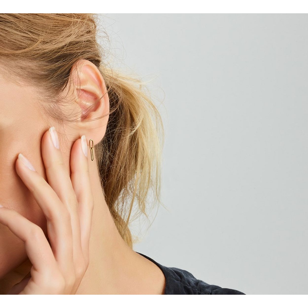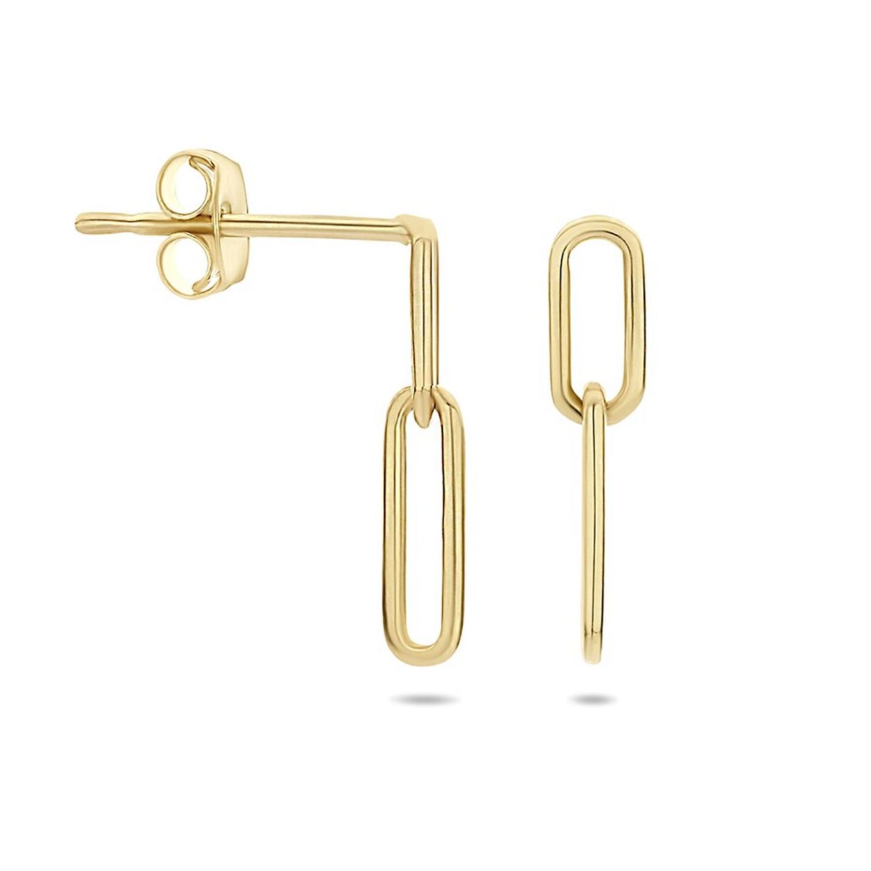 14k Geelgouden paperclip oorhangers. De oorhangers hebben een hoogte van 1.3cm en een breedte van 3mm.