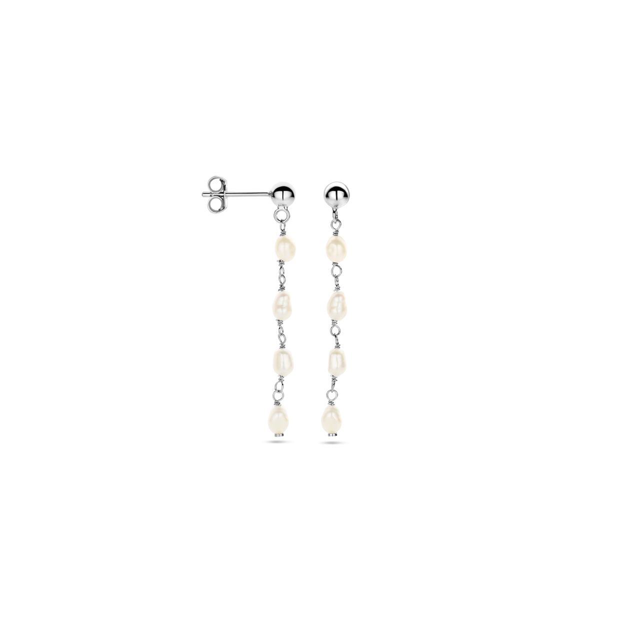 Gerhodineerd 925 zilveren oorhangers uitgevoerd met zoetwaterparels. De oorhangers hebben een hoogte van 39mm.