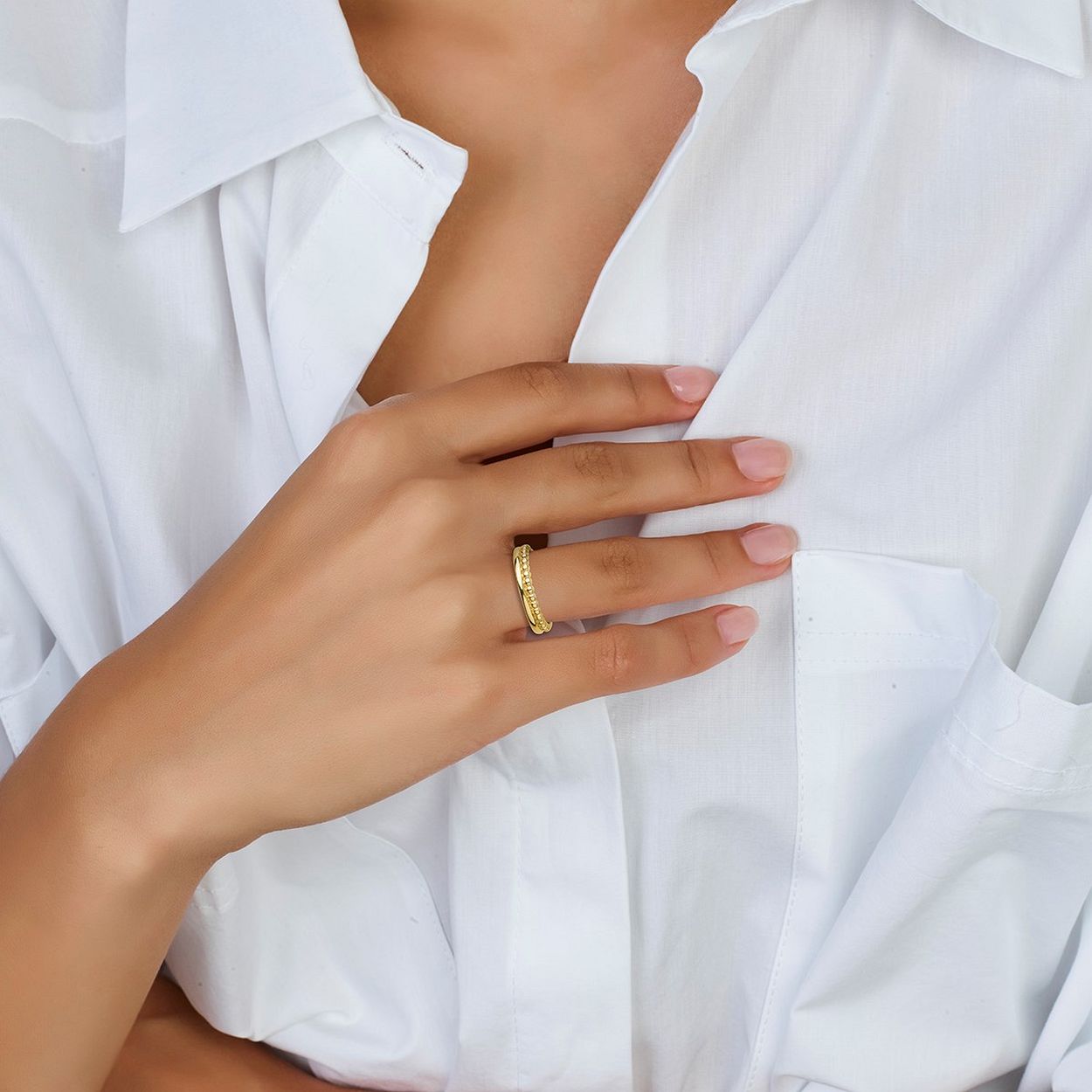 14k Geelgouden ring uitgevoerd met bolletjes. De ring heeft een breedte van 3.4mm.