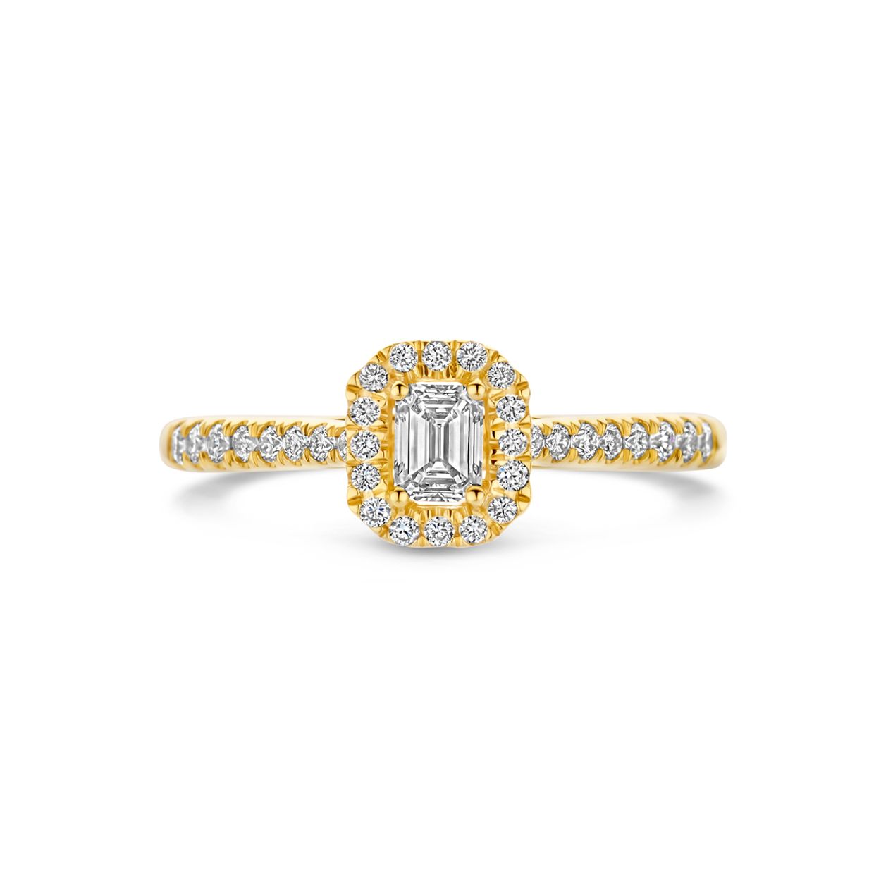 14k Geelgouden ring uitgevoerd met lab grown diamant. De ring heeft een breedte van 7mm. De totale diamantgewicht is 0.48ct.