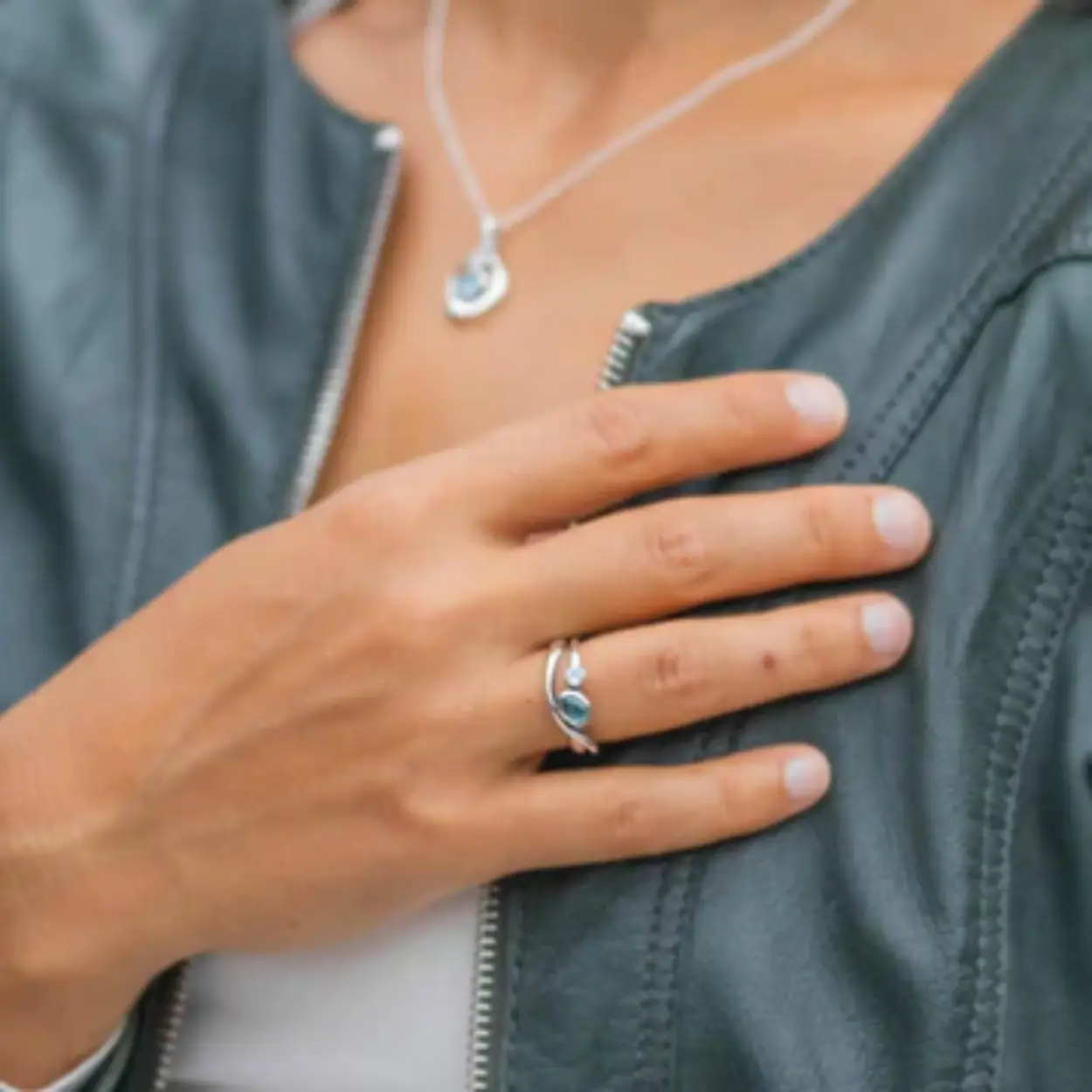 Deze sterling zilveren ring bevat een mooie 6 x 4 mm London blue topaas en een 3 mm ronde sky blue topaas.
